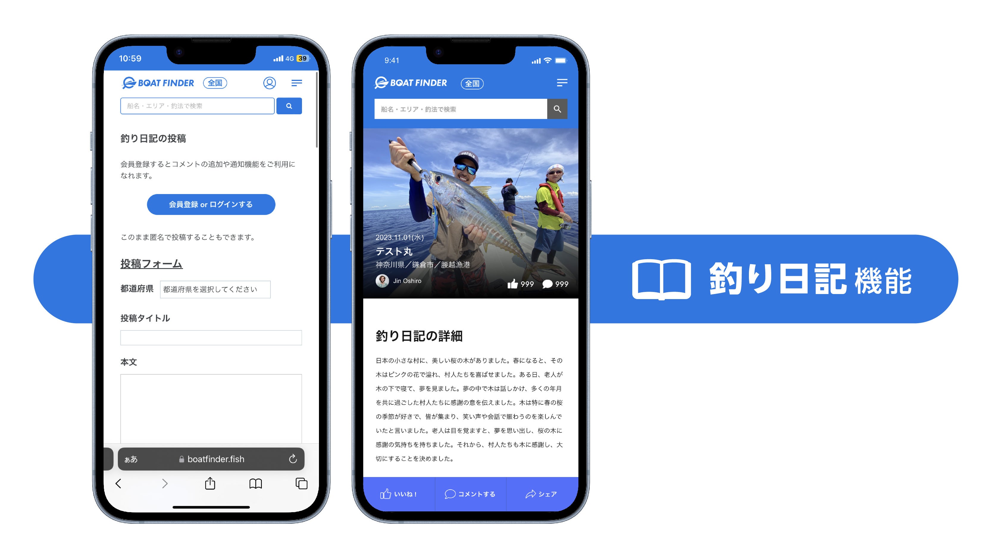 釣り船データベース「BOAT FINDER(ボートファインダー)」の「釣り日記」機能がリニューアル!