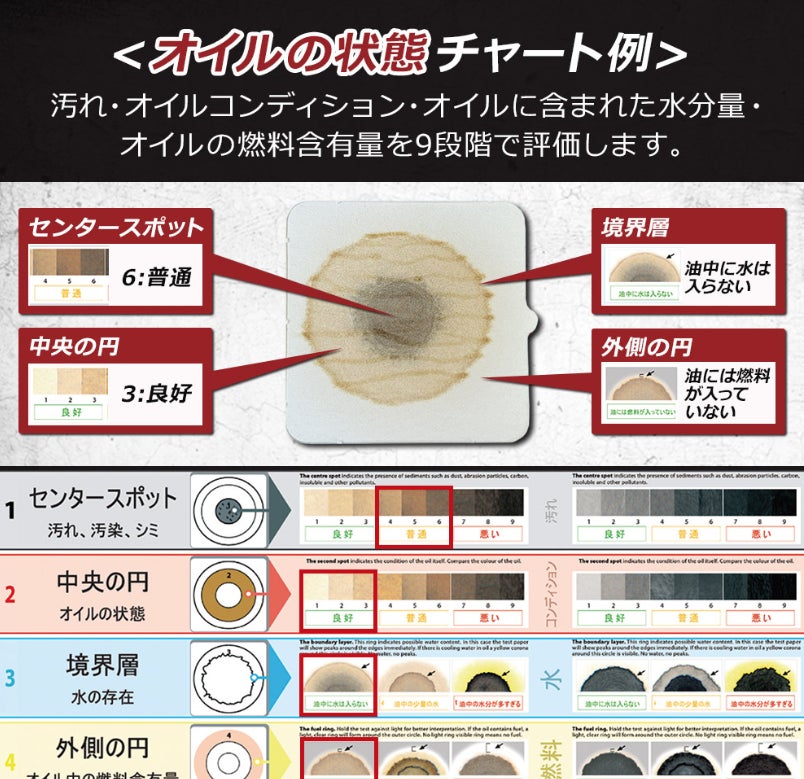 3.チェックシートに使用中のエンジンオイルを1滴を垂らす