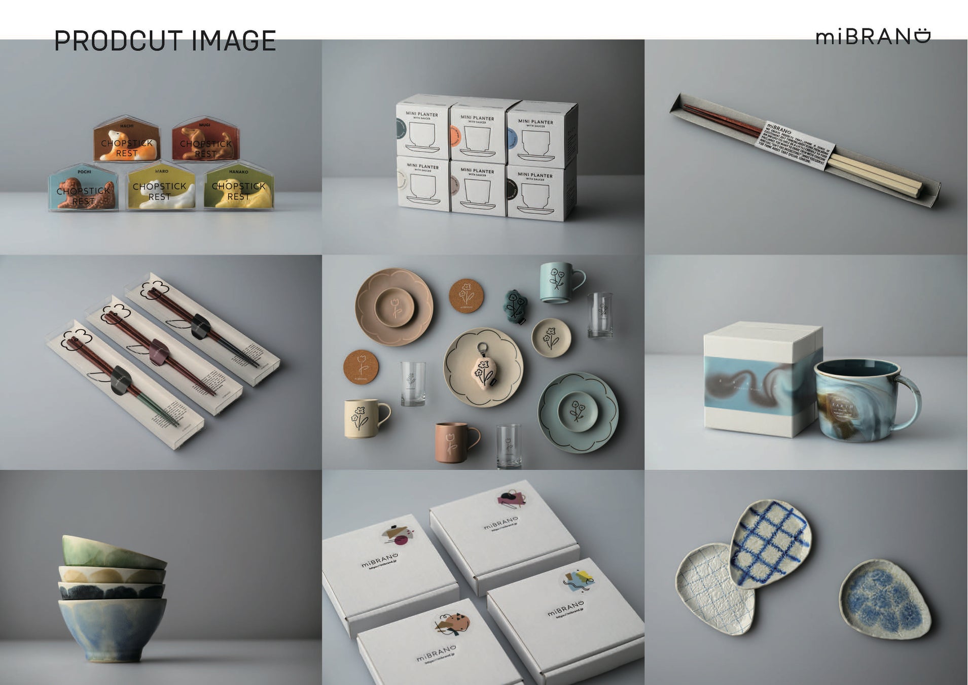 展示会やPOP UPで注目を集めた「ありそうでなかった美濃焼」をはじめとするテーブルウェア雑貨ブランドmiBRAND。厳選した約10種の食器や雑貨を販売。ギフトにも最適なラインナップが並びます。