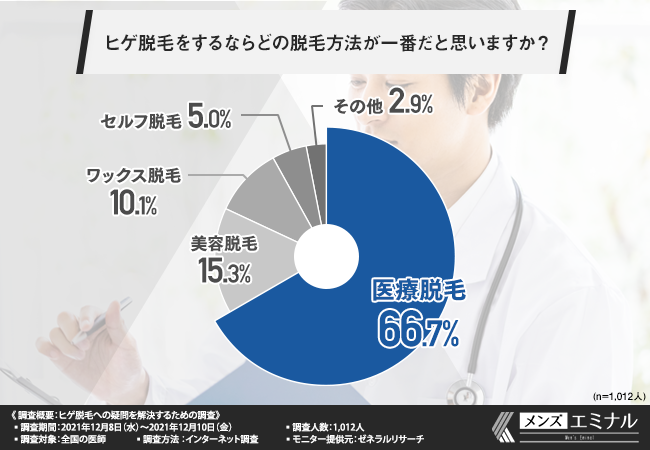 そこで今回、メンズ医療脱毛クリニック『メンズエミナル』(https://mens-eminal.jp/)は、全国の医師を対象に、ヒゲ脱毛への疑問を解決するための調査を実施しました。