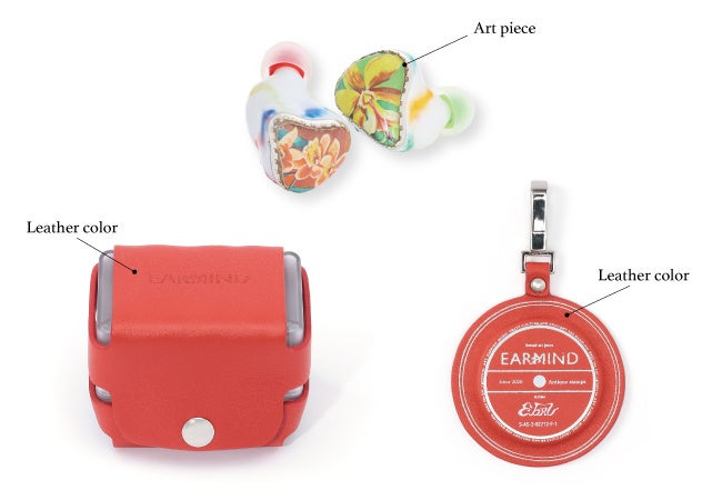 さらに、サウンドアートピースの付属アクセサリーであるバッテリーチャージャー専用革カバー、レーベルタグをお好きなカラーで受注を承ります。イヤホン本体だけでなく、付属品も実際に触れて選ぶことで、より自分好みのスタイルを余すことなく追及できます。一点ずつ丁寧につくられるEARMINDだからこそ叶えることのできる、ワイヤレスイヤホンをビスポークする、というDESIGNART TOKYO 2023での限定企画です。