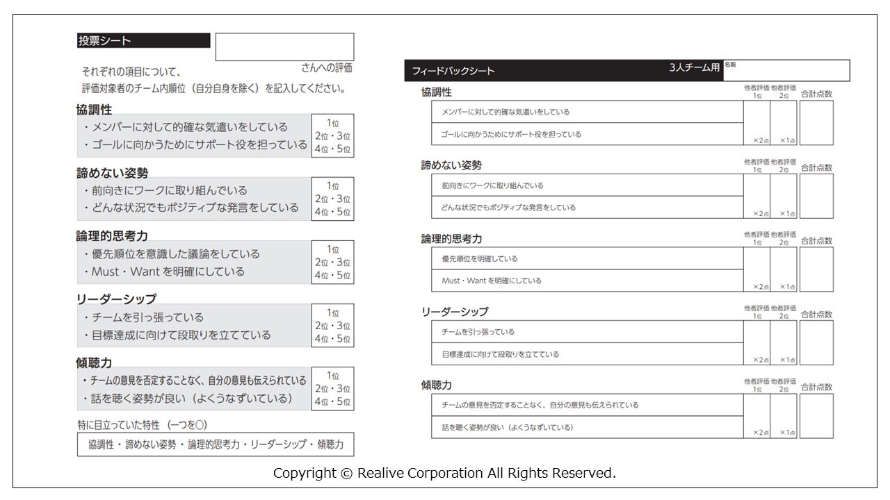 対策不可能なグループワークであるため、自分自身の本来の思考力や行動のクセが顕著に表れます。場合によっては自分では自覚できなかった(無意識で行っていた)行動を再認識するとともに、そんな素の自分を見た周りのメンバーにはどのように映っているのかを知る機会となっております。