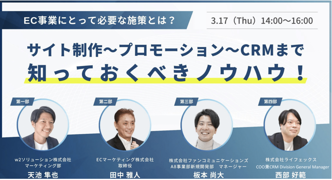 【3/17 無料共催ウェビナー開催】EC事業にとって必要な施策とは?【サイト制作~プロモーション~CRMまで】知っておくべきノウハウ!