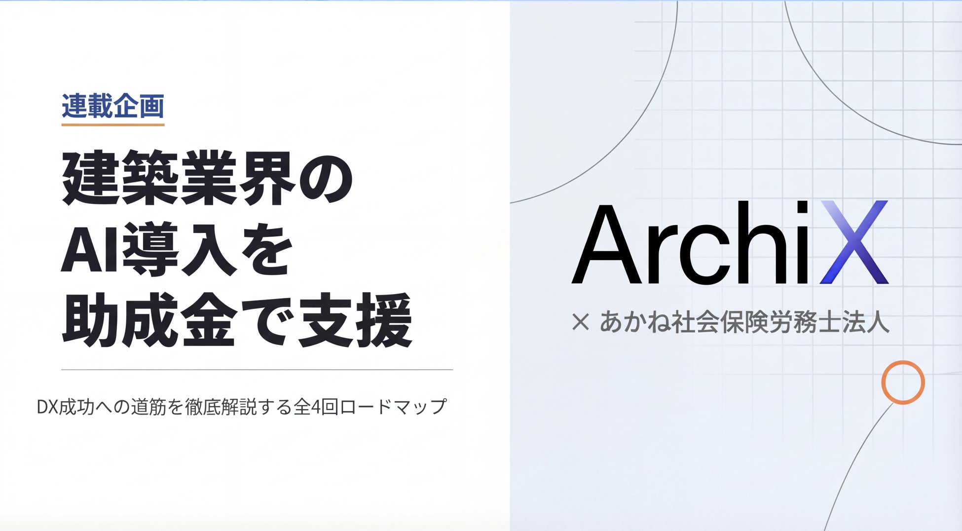 建築・内観パース生成AI「ArchiX(アーキエックス)」を運営するアクチュアル株式会社(本社:京都市中京区、代表取締役:辻 勇樹)は、助成金申請に強みを持つあかね社会保険労務士法人(所在地:大阪市北区、代表社員:山中 晶子)と共同で、建設業界の「2024年問題」をAIと助成金で解決するための実践的な連載記事の配信を開始いたしました。