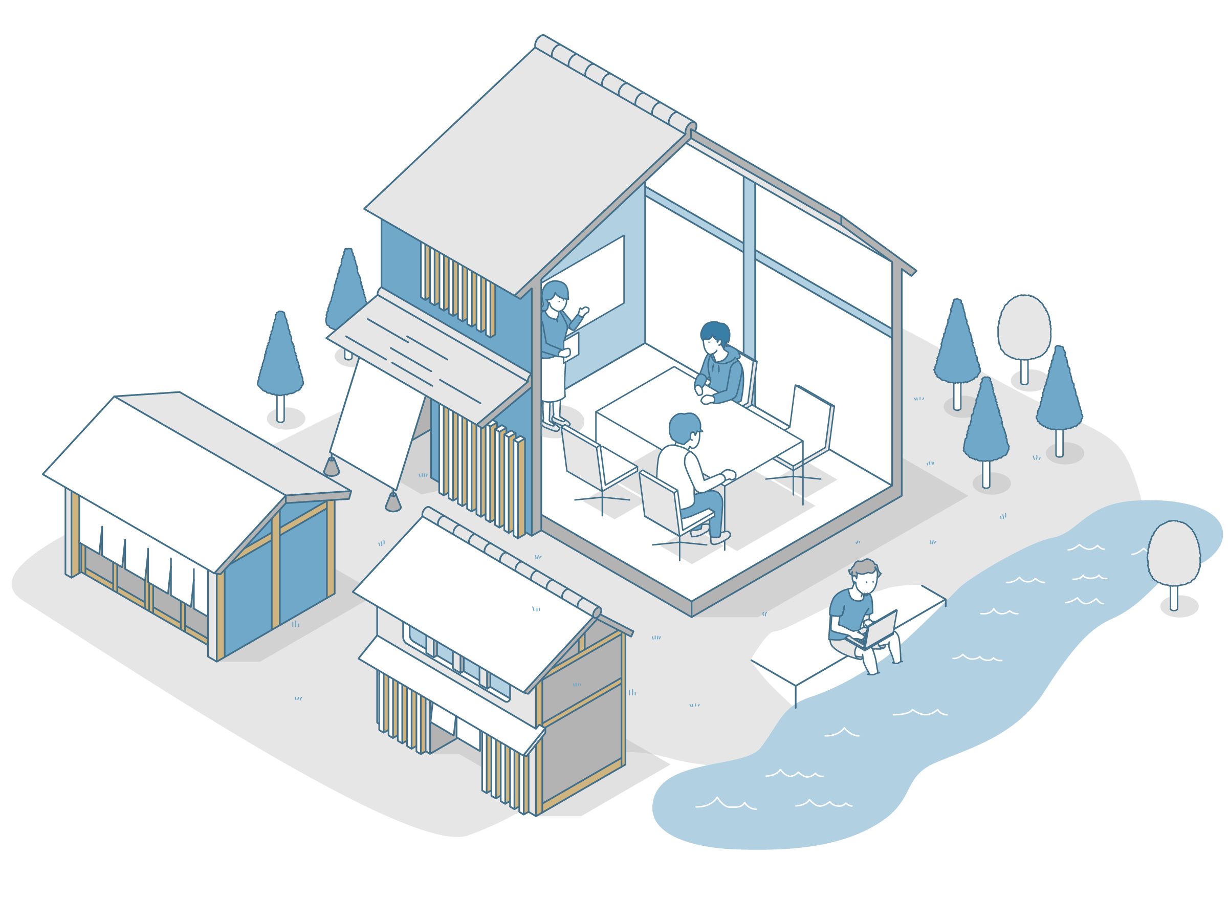 自然・伝統・人の繋がりからなる「豊かな暮らしの中で働く」という働き方を提案すべく、