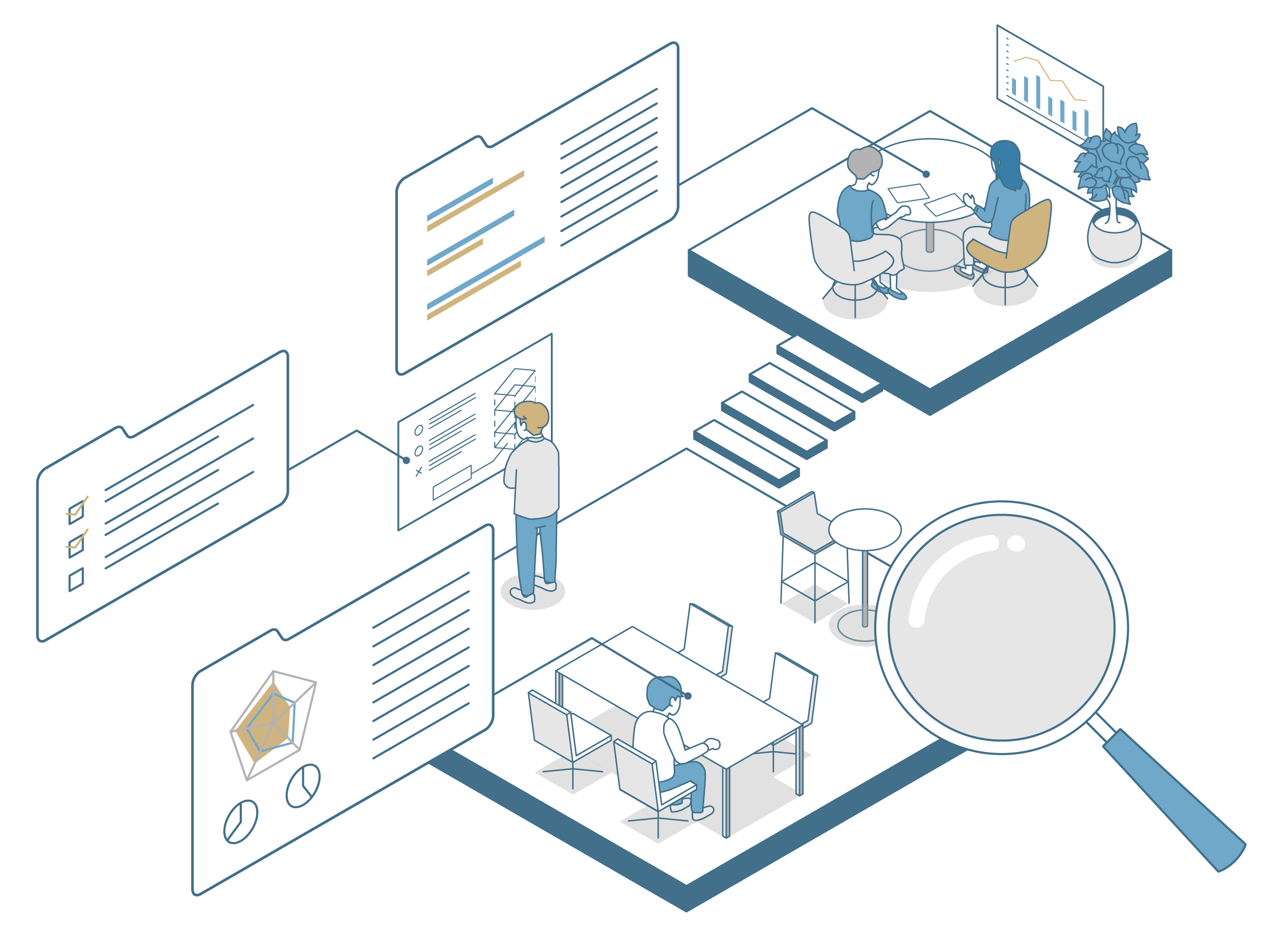 組織全体を集計した診断結果から職場環境の課題と優先順位を割り出し、オフィスレイアウト変更・システム導入・制度変更など、企業として優先的に取り組むべき効果的で具体的なアクションを導きます。