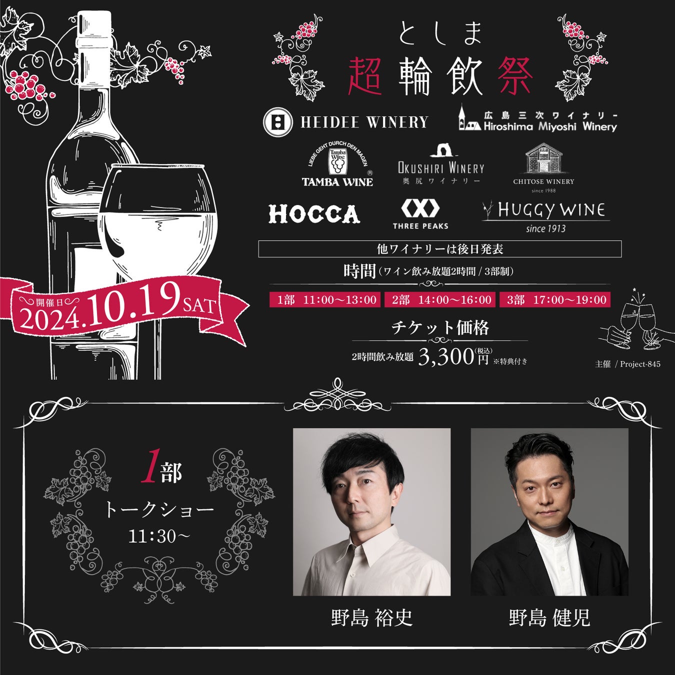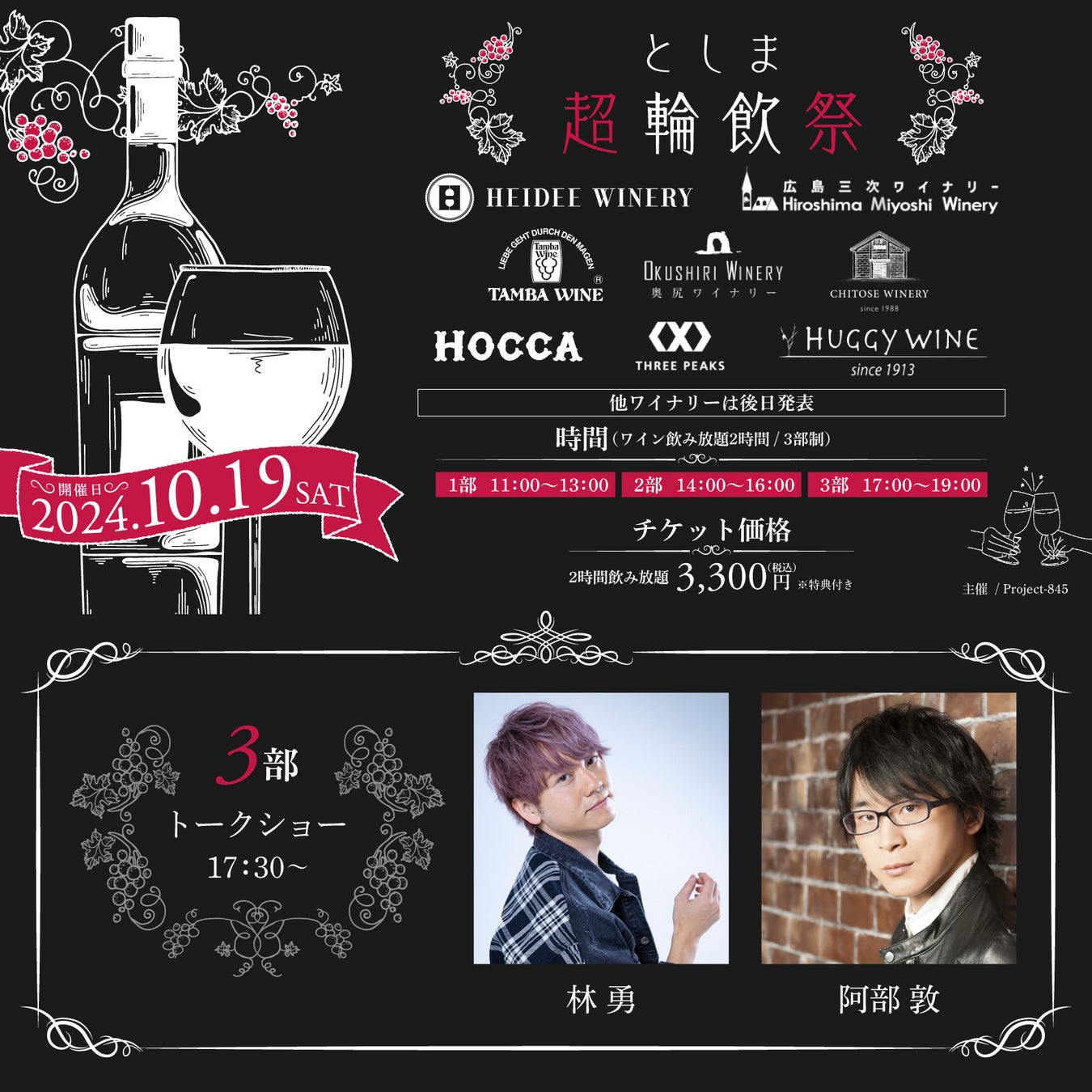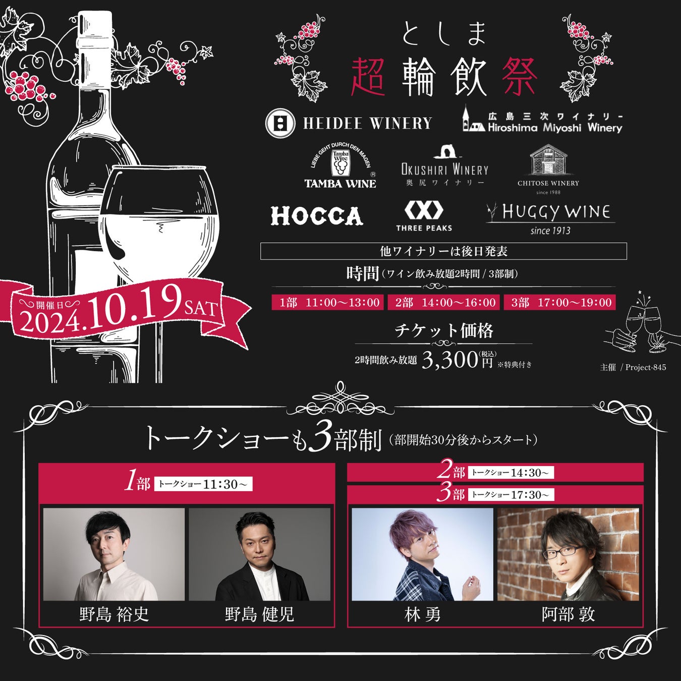 【野島裕史、野島健児、阿部敦、林勇が出演!】Hareza池袋にワイナリー20社超が出展!日本ワイン試飲会『としま超輪飲祭』が10/19(土)に開催!!