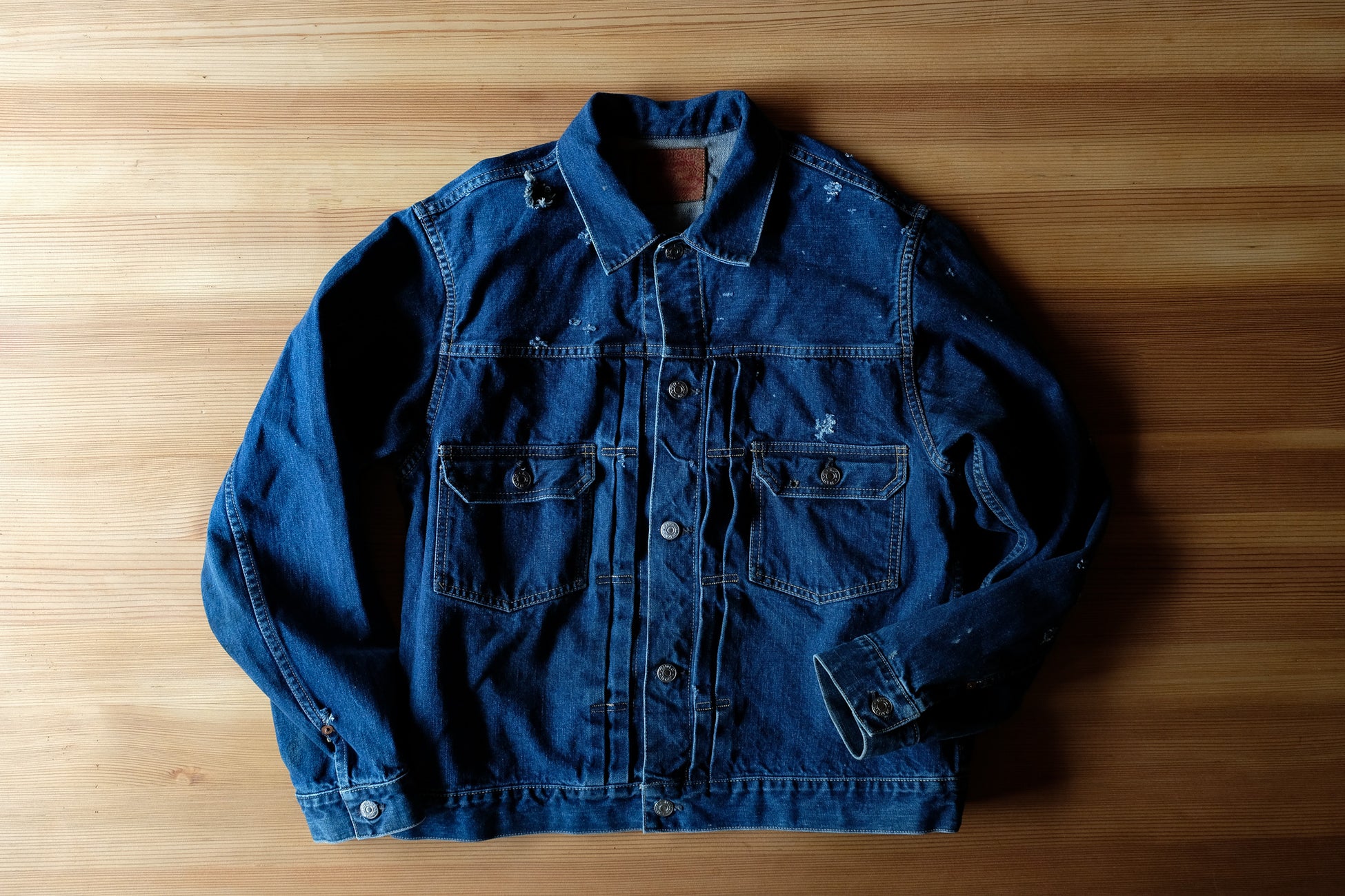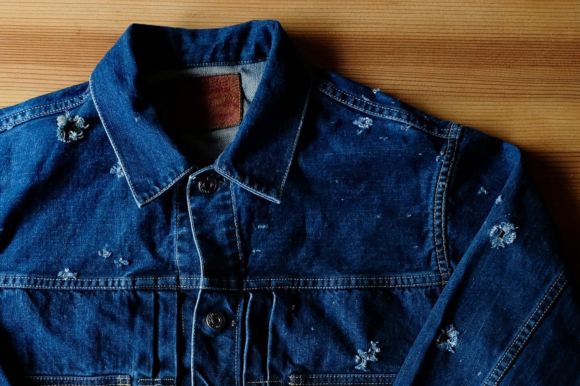 業界初。“リアルダメージ”が深い味わいを生む、世界に一着のデニムジャケット『焼杉デニムジャケット4/29(土)発売』
