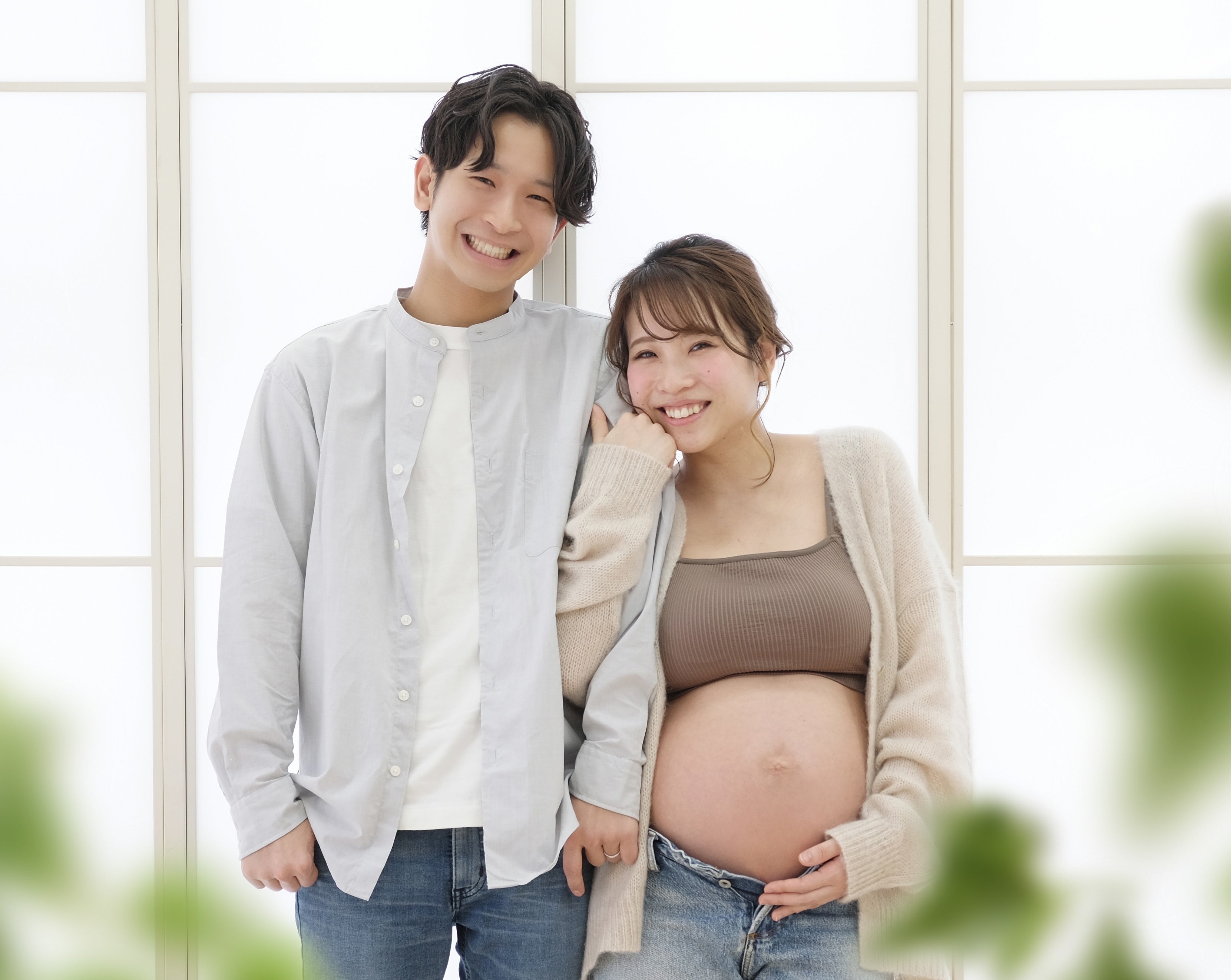 スタジオアリスでは、出産前の貴重な瞬間を美しく残す「マタニティフォト」の撮影をご用意しています。光があふれる背景や、やさしくあたたかな雰囲気を演出するナチュラルテイストなセットで、ご家族の幸せに包まれた姿を写し出します。マタニティドレスはもちろんのこと、お兄ちゃん、お姉ちゃんとなるお子さまの衣装代も無料でお貸出しさせていただきます。
