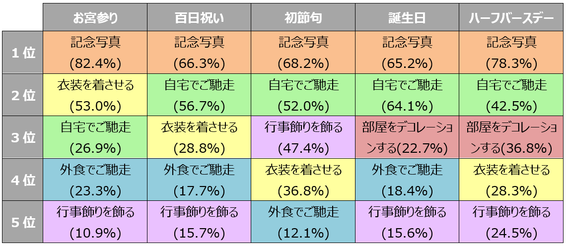 - 2.各行事の祝い方ランキング1位「記念写真」。令和親の方が写真館・フォトスタジオで撮影する傾向
