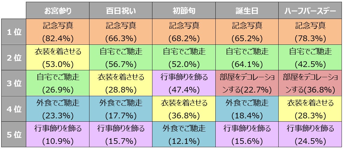 令和の親、約4割「ハーフバースデー」を祝う!約6人に1人が「マタニティフォト」実施。誕生日・ハーフバースデーのお祝いは「家族のみ」が主流!?各行事の祝い方ランキング1位「記念写真」。