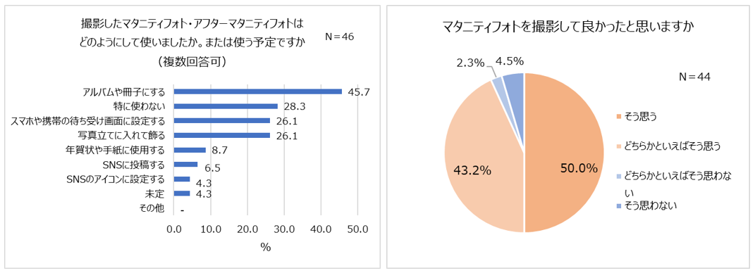 使用方法は「アルバムや冊子にする(45.7%)」が最多。9割以上がマタニティフォトを撮影して“満足”