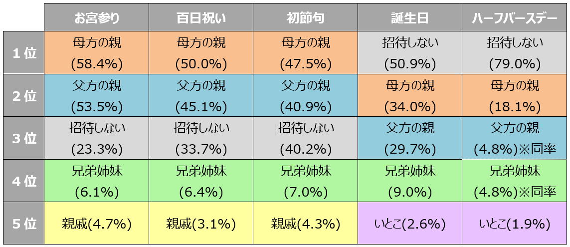 伝統行事は「母方の親」を招待。誕生日やハーフバースデーには「誰も招待しない」が多数