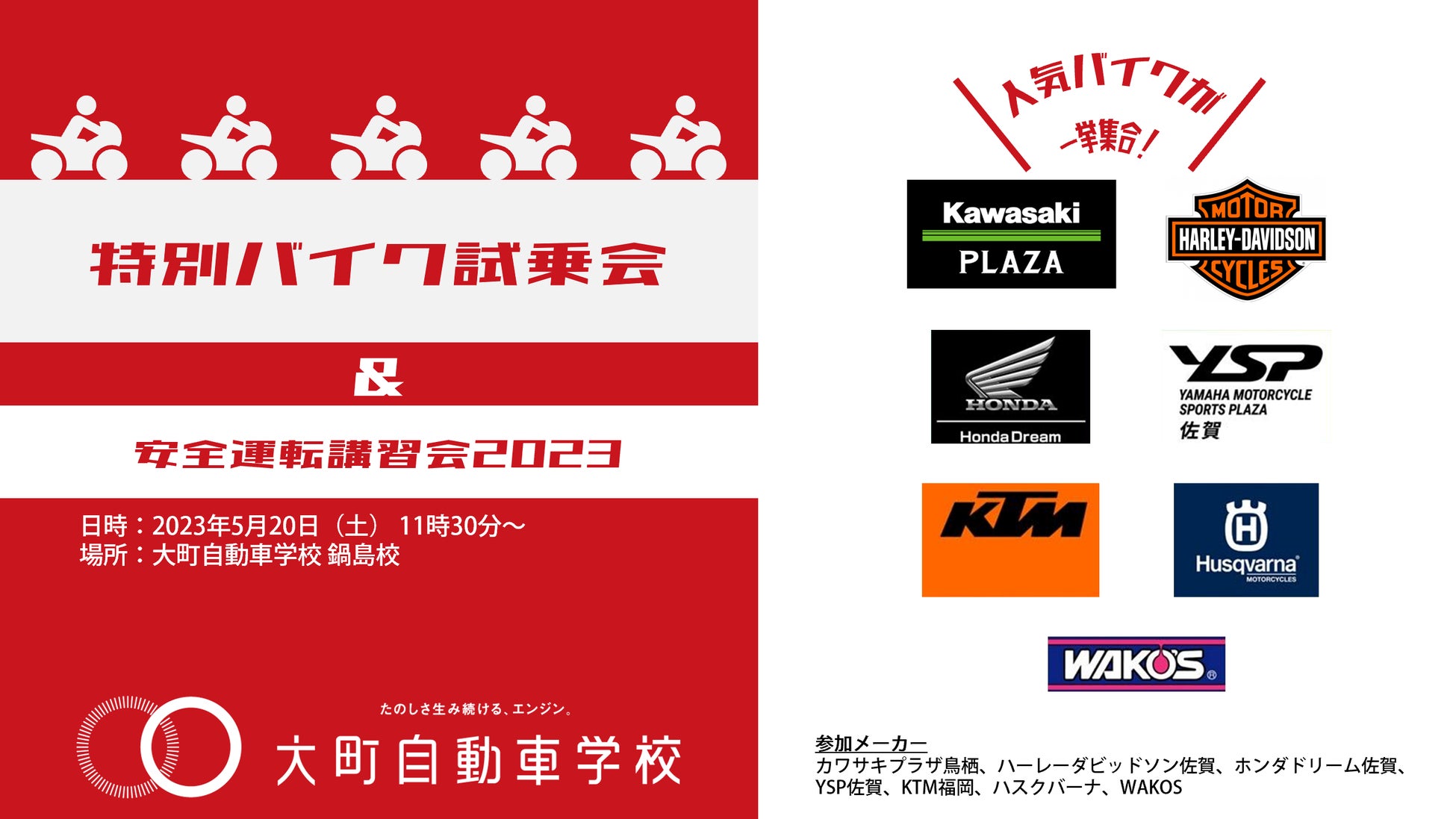 人気バイクメーカー5社一挙集合!「特別バイク試乗会&安全運転講習会2023」を佐賀市鍋島で5月20日(土)開催決定