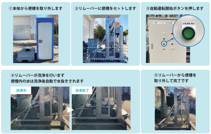 ◆「リムーバー」で行う仮設トイレ便槽洗浄のながれ