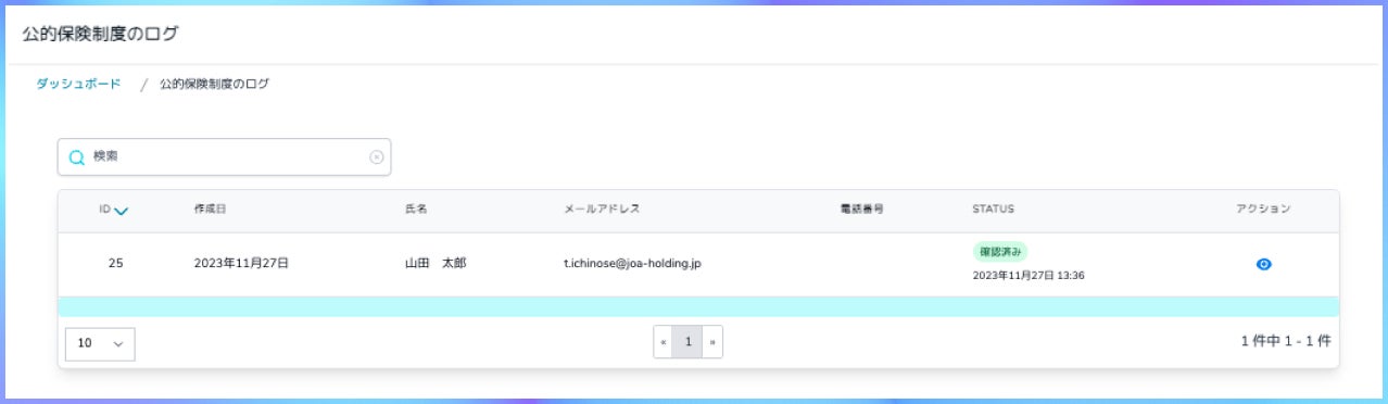 メールもしくは対面で公的保険の内容について説明を行なった後に、説明を受けたか確認を行う機能も合わせて実装されています。お客様自身で確認した事を同意頂く仕様となっており、同意頂いた確認をログとして記録する事が可能です。