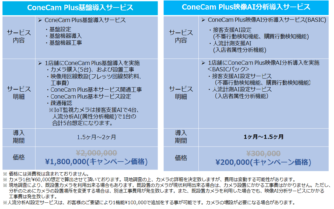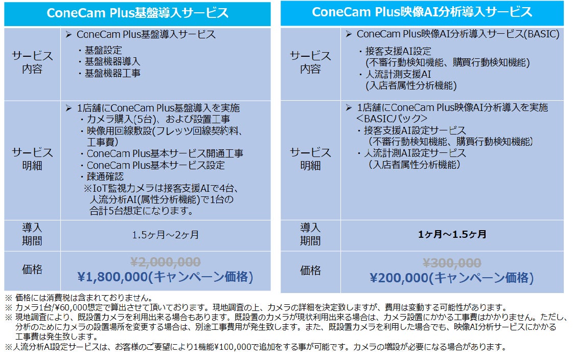 IoT 監視カメラ+映像 AI 分析サービス『ConeCam Plus サービス』のキャンペーンを実施