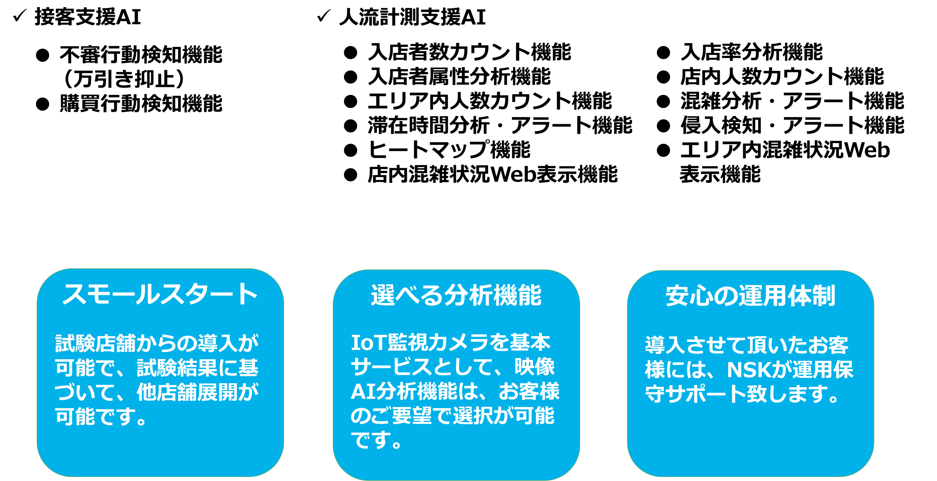 日本ソフトウエア株式会社(本社:東京都千代田区、代表取締役社長:矢島 博)は、IoT監視カメラを活用したネットワーククラウドカメラサービス「ConeCam Plusサービス」に映像AI分析を可能とする機能のご提供を開始しました。小売業を中心に防犯上での監視カメラは導入しているが、その映像を利用して顧客分析を実施し、マーケティング情報として活用されている企業は少ない状況になっております。そこで、当社としてはIoT監視カメラでクラウド上に蓄積された映像データをAIにより分析できる機能を実装したサービスをご用意しました。今回はキャンペーンとして、2022年6月30日まで限定価格でご提供させていただきます。是非、ご検討のほどよろしくお願い申し上げます。