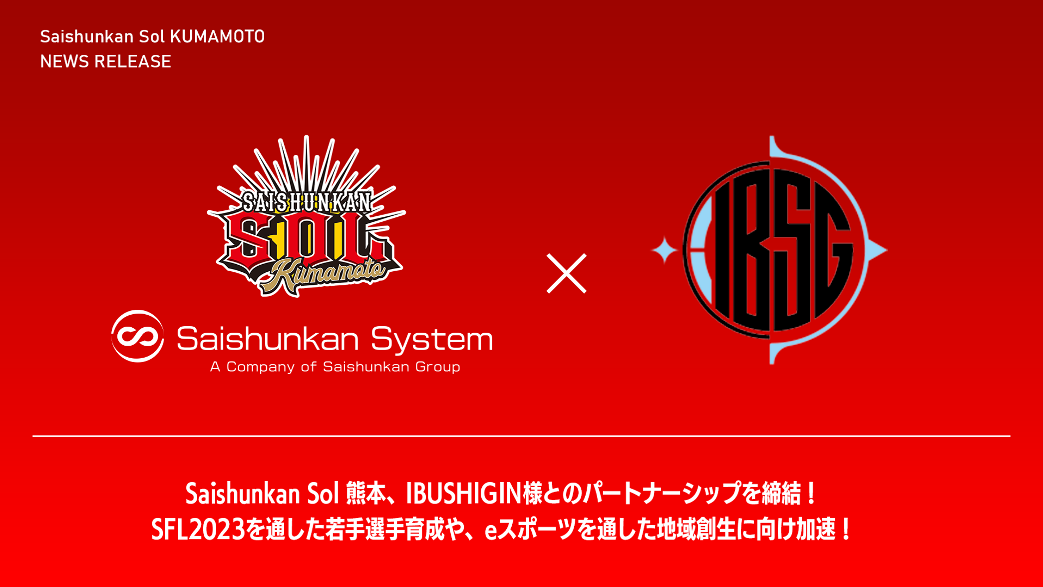 「ストリートファイターリーグ: Pro-JP 2023」を共に闘うササモ選手のレンタル加入と併せて、「Saishunkan Sol 熊本」とプロゲーミングチーム「IBUSHIGIN」はeスポーツシーンの活性化、若手選手の活躍の機会創出、そしてeスポーツを通した地方創生へ向けてパートナーシップを締結いたしました。