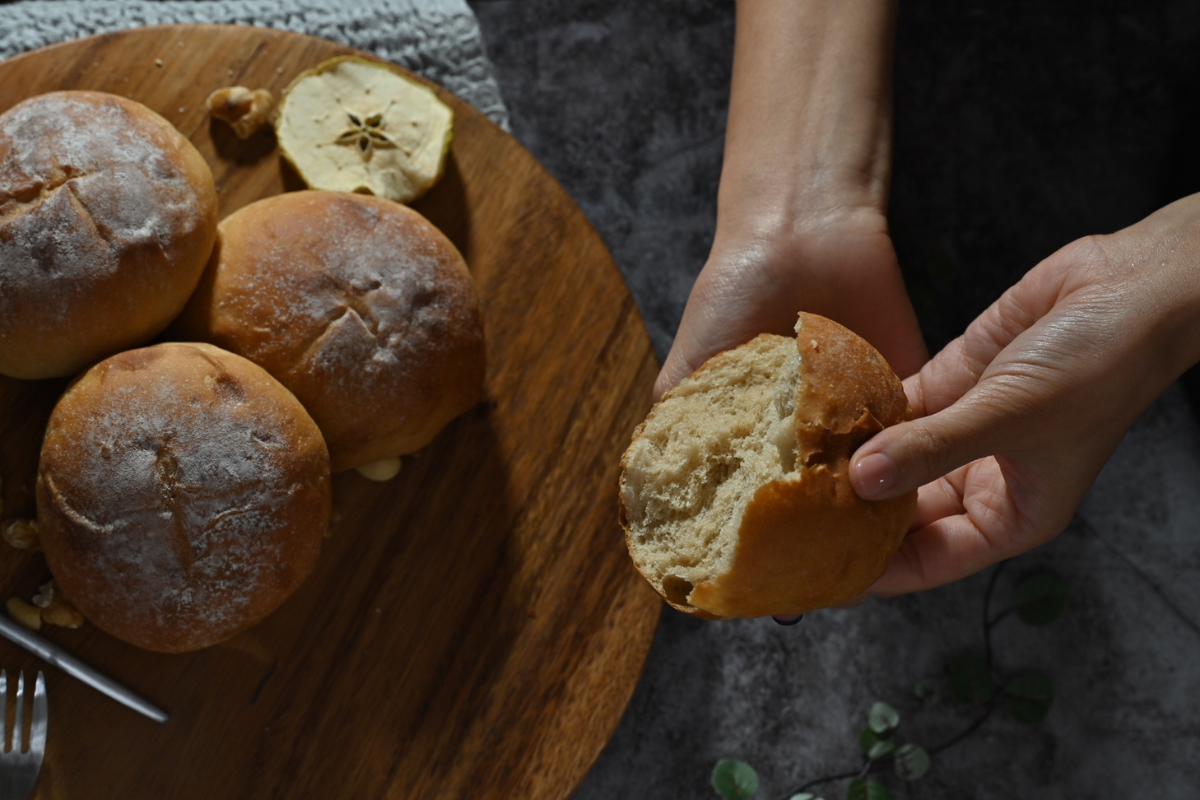 Aki「子供が産まれてから、市販品の成分がとても気になるようになりました。『ママが子供にあげたいパン』美味しくて、ママが我が子に使いたくない材料は使わないママの理想を叶えたパン。そしてパンに余分なものが入っていないからこそ、栄養、味をプラスするのはあなた次第。食べる人の状況、その日の気分やシチュエーションで、様々なものと合わせて楽しんでもらいたいです。」