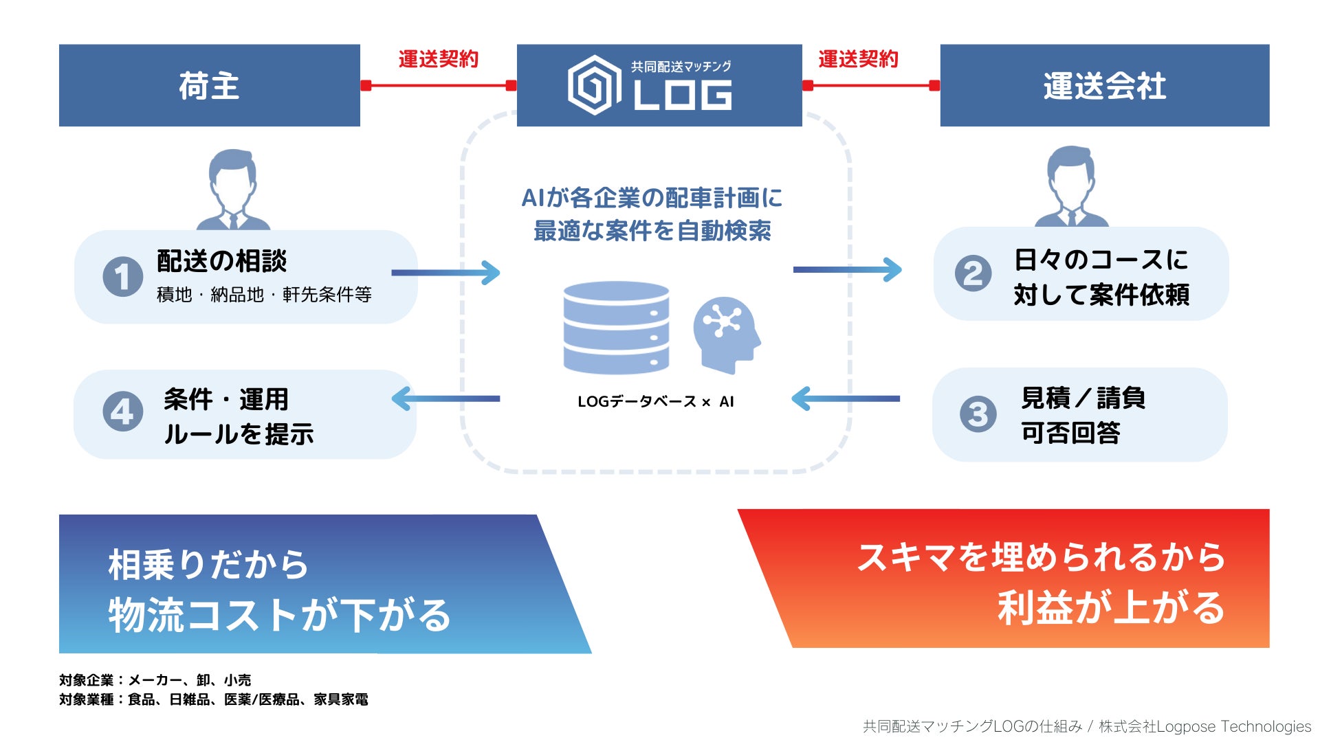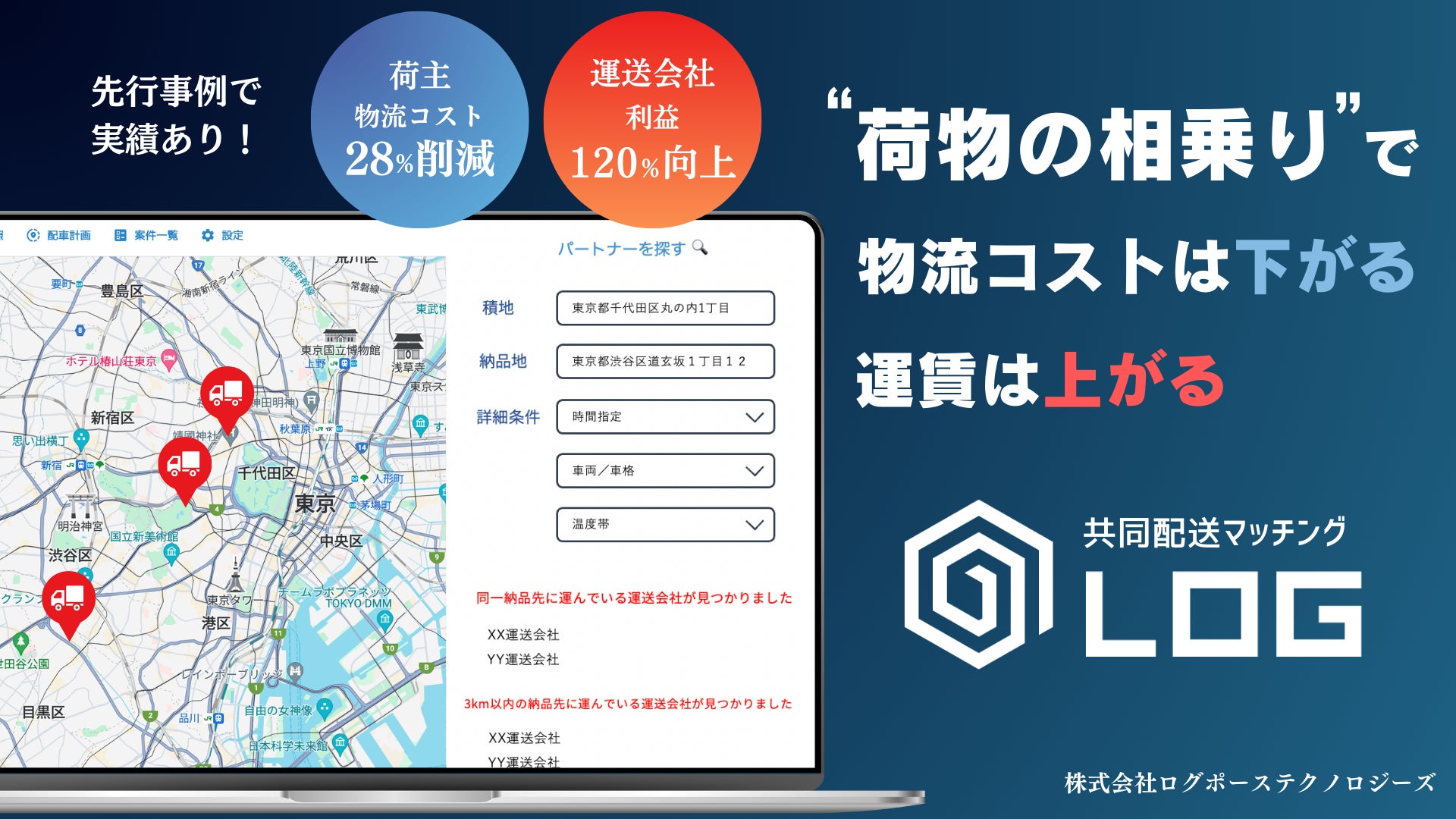 "荷物の相乗り"で2024年の物流課題を解決:ログポースが共同配送をコーディネートする「共同配送マッチングLOG」を正式リリース - 物流費28%削減と運送利益120%向上の両立を実現した先行事例あり