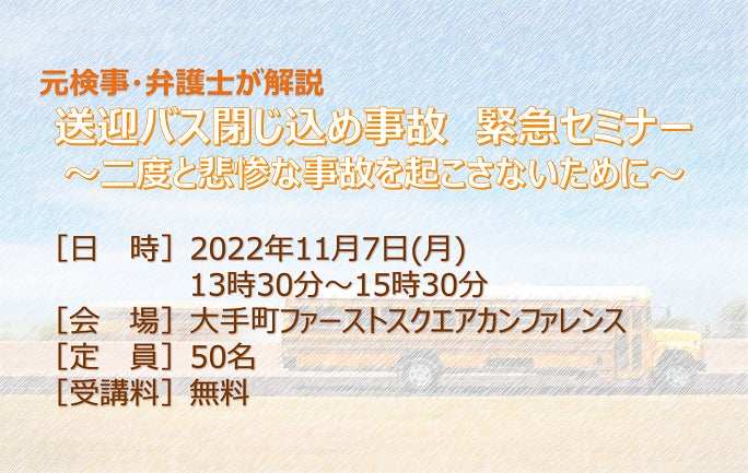 ※保育所・幼稚園経営者様向け※【2022年11月7日開催】送迎バス閉じ込め死亡事故 緊急セミナー