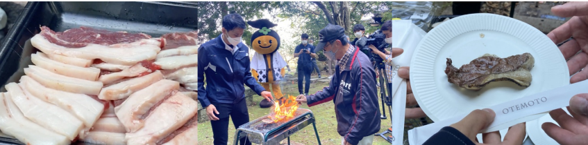 うきは市の中⼼地から少し離れた屋部地蔵公園内にある「屋部⼭荘」を豊かな⾃然に囲まれた閑静なワーケーション施設と⾒⽴てました。⼭荘の庭にはBBQ設備が設置されており、その⾷材としてJAにじ⽿納の⾥よりドローンを⾶⾏させ、地域の⾷材(果実、ジビエ⾁)を配送しました。