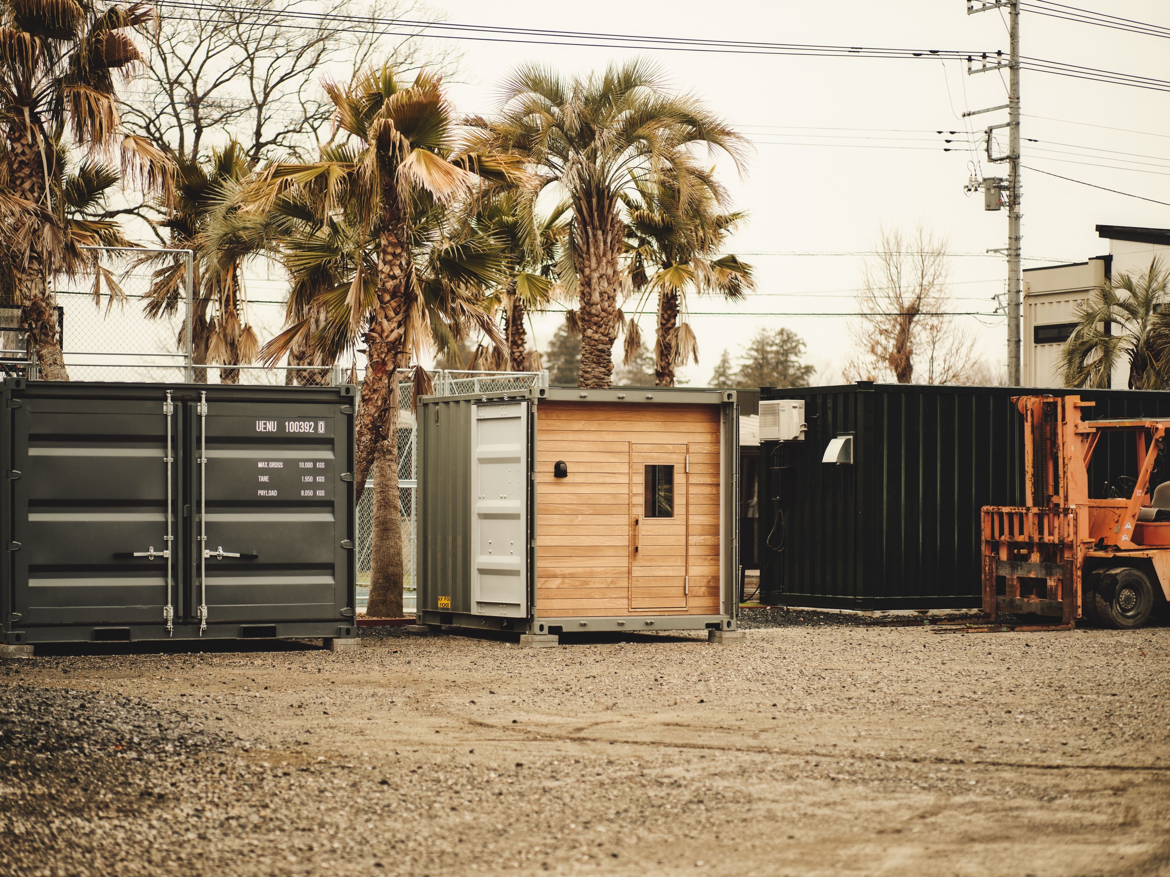 SAUNA BLOCKは、通常流通に使用される海上コンテナの10Ft(長さ2,991mm × 幅2,438mm × 高さ2,591mm)タイプをサウナ室にした、こだわりのサウナコンテナです。