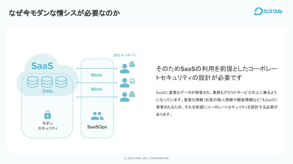 近年、SaaS(*1)普及に伴い、データだけでなく業務そのものがクラウドサービス上に乗るようになりました。企業の大小に関わらず、ほぼすべての部署でクラウドサービスが活用され、顧客情報や社員情報などの重要なデータの多くがクラウドサービス上に乗り、毎日のようにそれらのサービスにアクセスすることが一般的になりました。