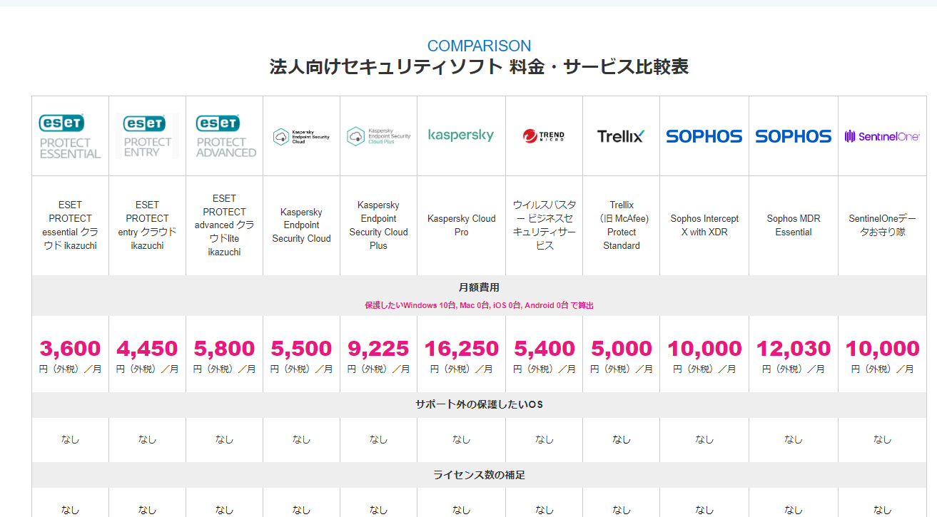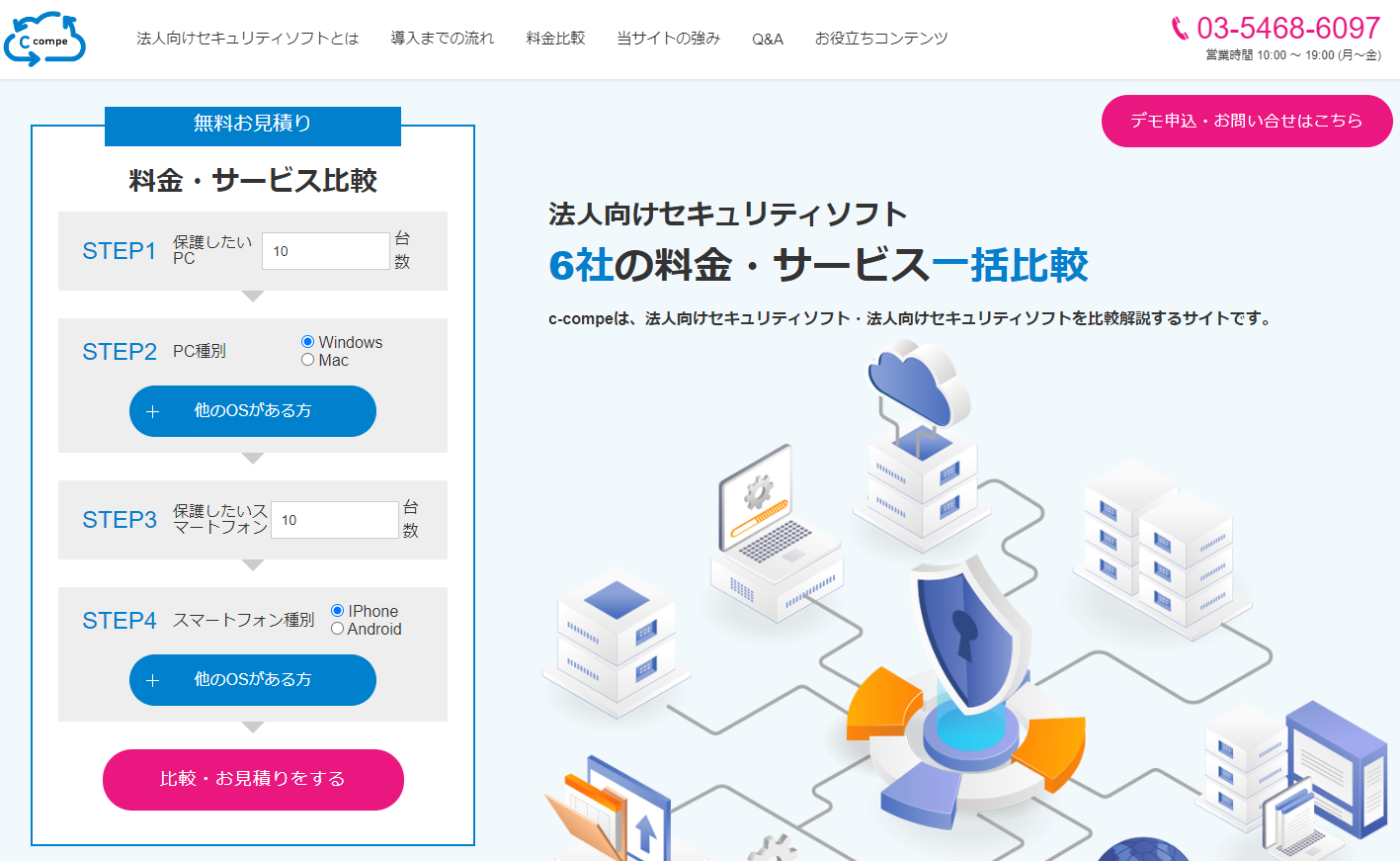 「法人向けセキュリティソフト 6社の料金・サービス一括比較サイトc-compe.com」