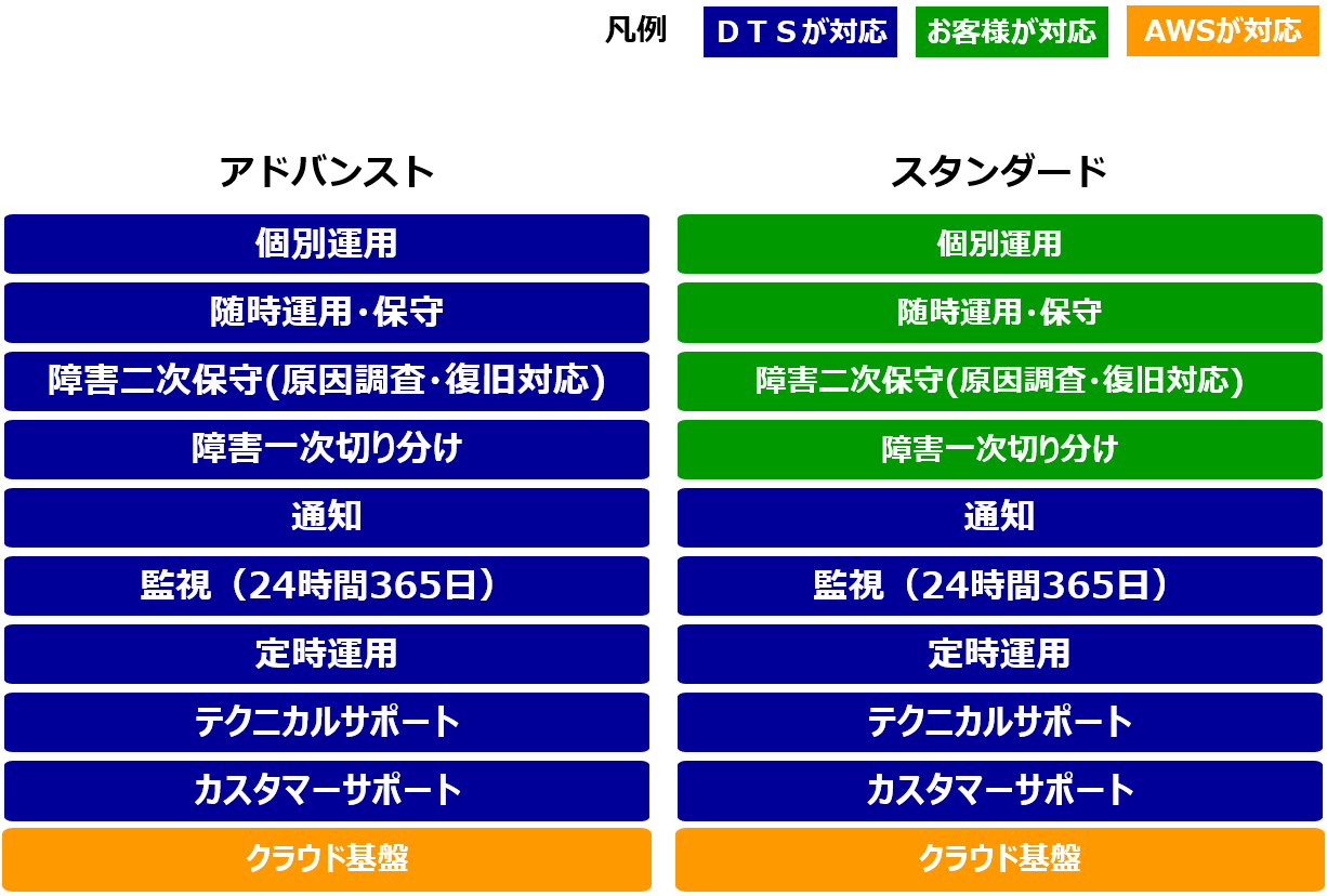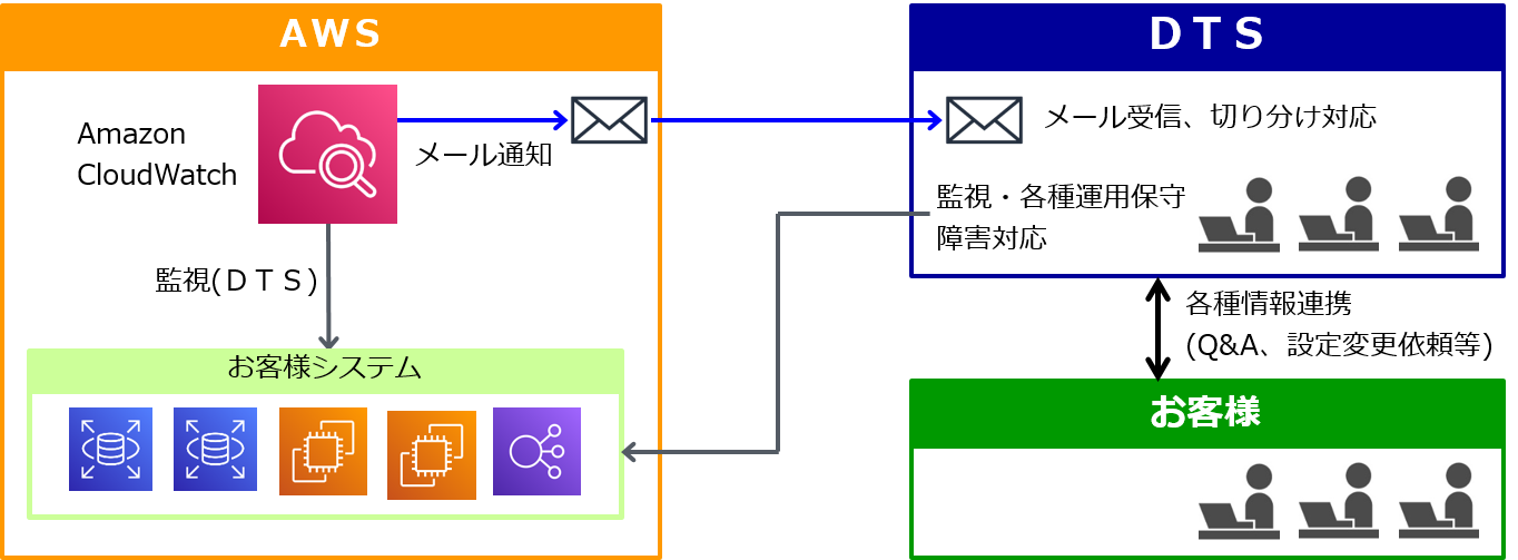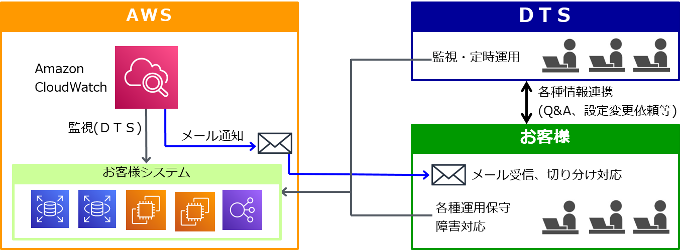【スタンダードメニュー】 お客様が運用保守をメインで担当しDTSは監視と簡易運用を実施