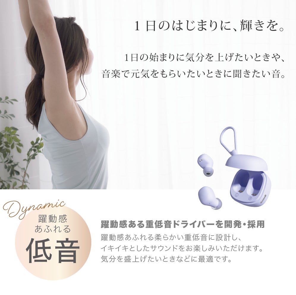 本製品は、超⼩型で軽量のワイヤレスイヤホンで、「CC-TW01」「CC-TW02」の2つのモデルをニュアンスカラー4⾊「薄桜(ピンク)」「⽩藍(ブルー)」「⽩(ホワイト)」「⽩藤(パープル)」で展開いたします。
