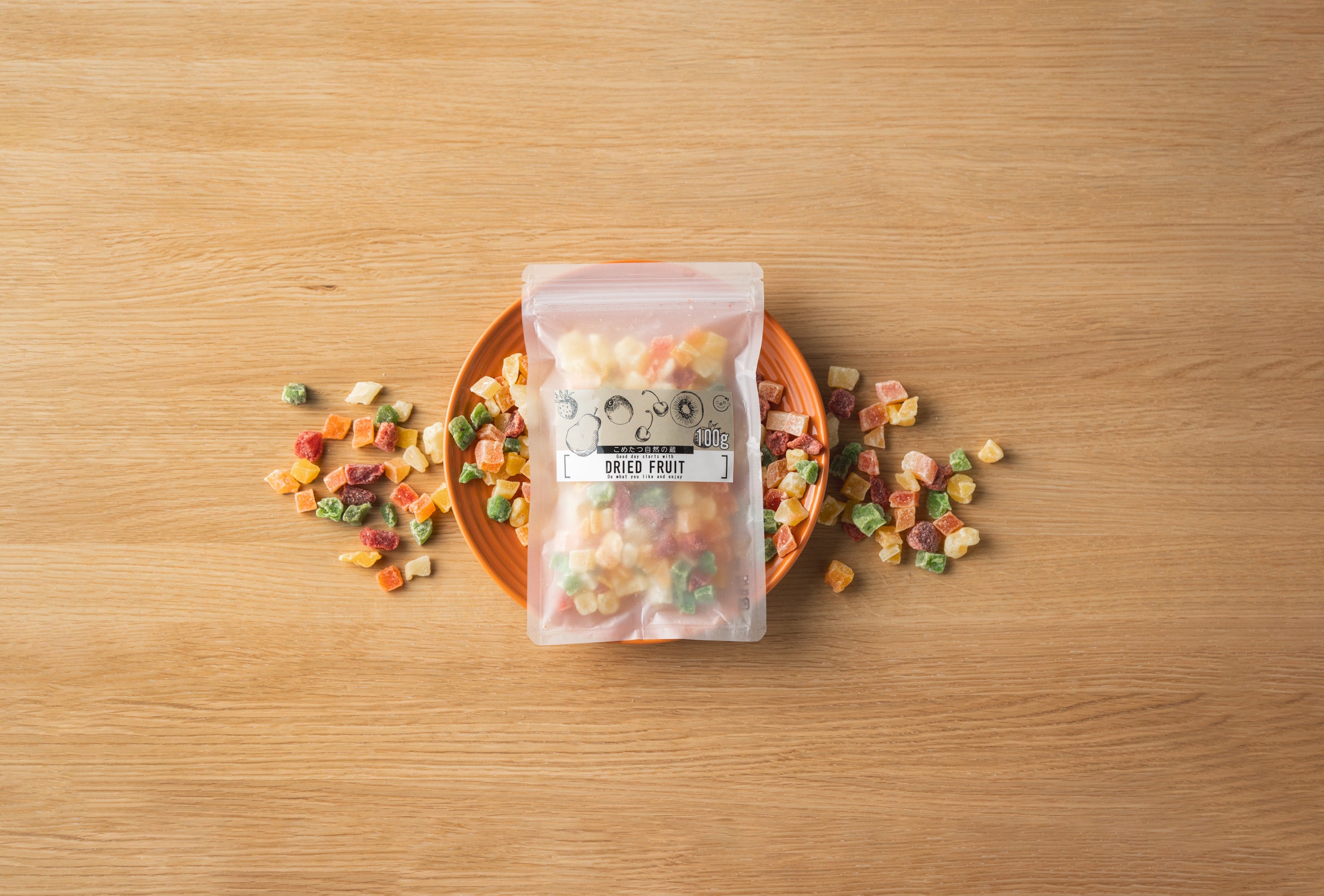 マンゴーやいちご、パイナップルにキウイなど、食べやすい小さなキューブ形のドライフルーツ。プレーンのヨーグルトに入れたり、オートミールに混ぜて食べたり、キューブ形だから楽しみ方の幅も広がります。