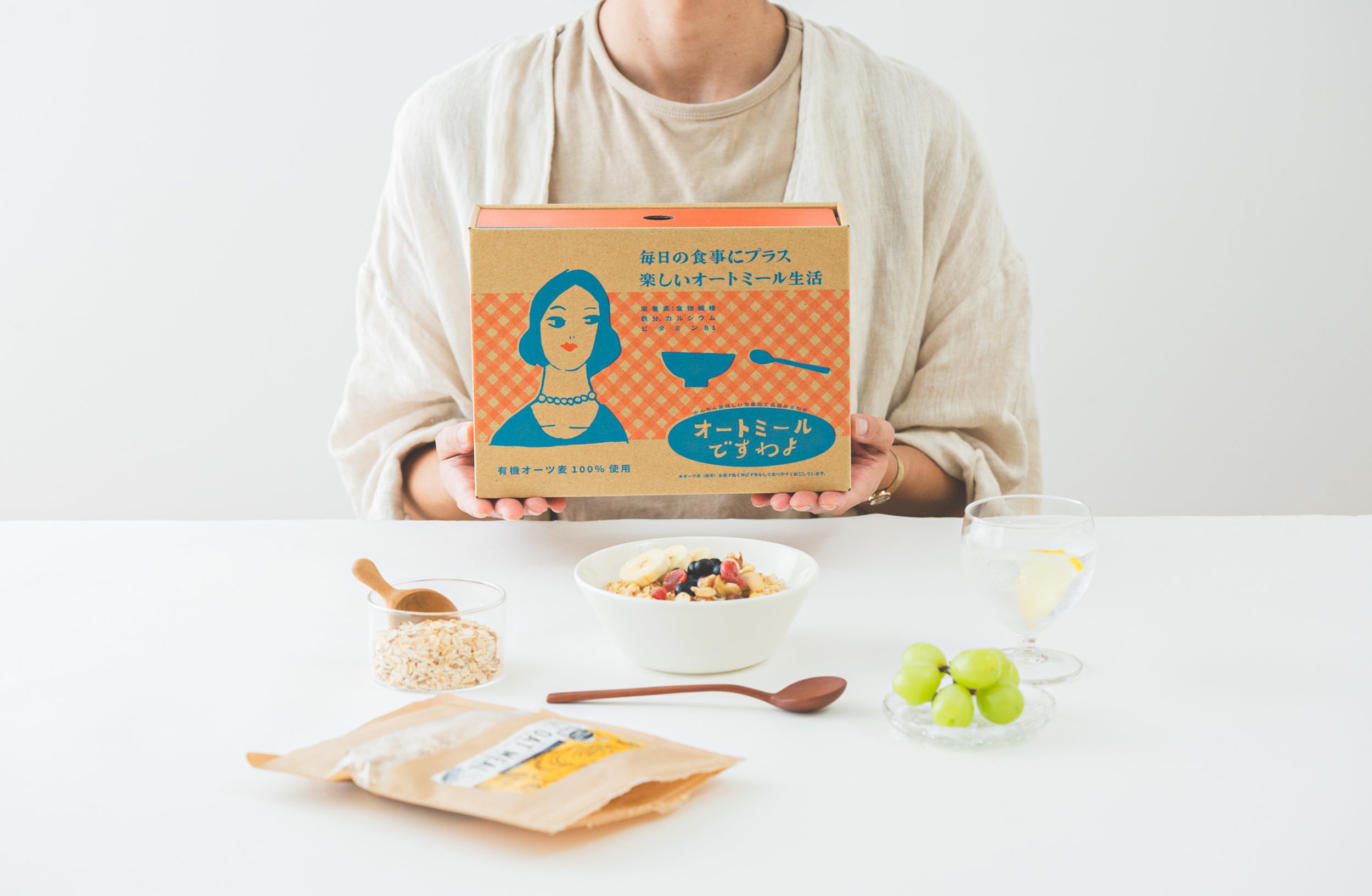 キュートなオリジナルパッケージでお届けするオートミールのギフトセット。日々のちょっとしたことに時間やひと手間をかけて、ひとつひとつ丁寧に向き合うことは、せわしなく生きる現代の人にとって、大切なことかもしれません。「オートミールですわよ」は、そんな丁寧な暮らしをするきっかけをくれるギフトでもあります。