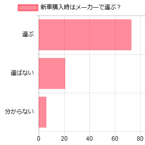 メーカーで選ぶ人が7割を越え、車選びにおいてメーカーを重視する人が非常に多いことが分かりました。