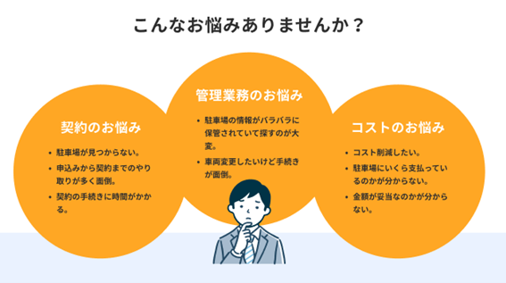 駐車場のオーナー様および管理会社様においても、紙での契約管理の煩雑さの改善、管理業務のコスト削減を求める声は年々高まってきておりました。同時に月極駐車場の利用者においても、駐車場探しから契約までオンライン上での完結を求める声は高まっており、都心地方問わず月極駐車場のDXが求められている状況です。