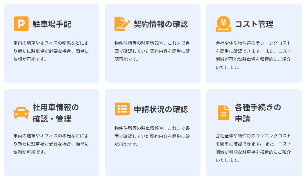 豊富な機能及びサポート体制により、月極駐車場管理の大幅な効率化を実現致します。