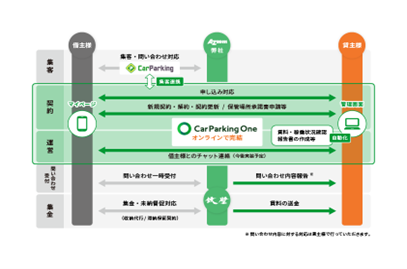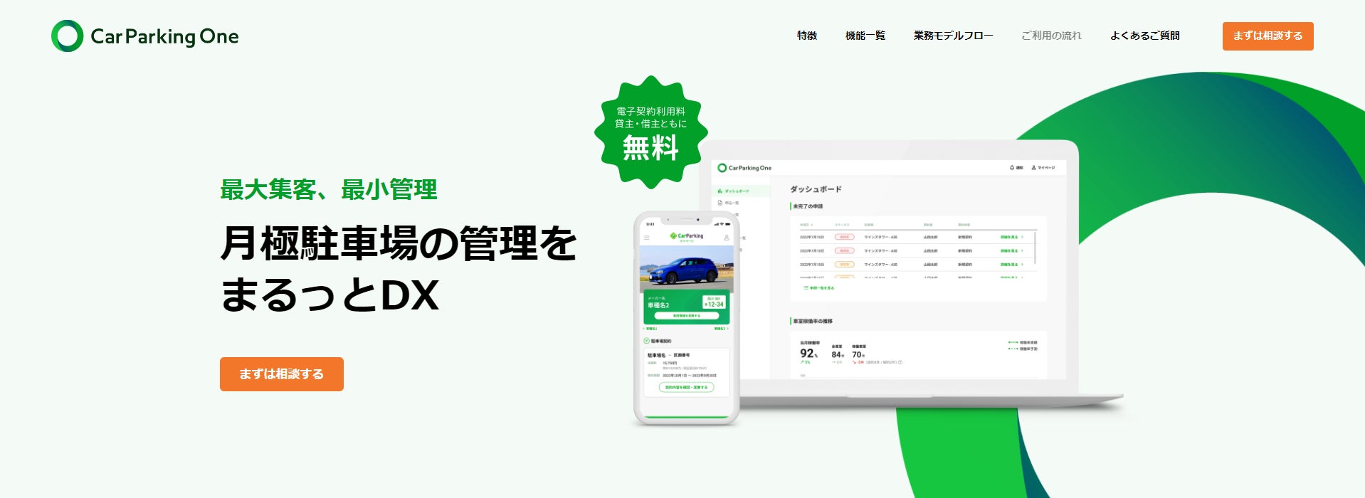 「CarParking One」は、集客から申込・契約の締結、契約管理までをオンライン上で完結できるクラウドシステムです。