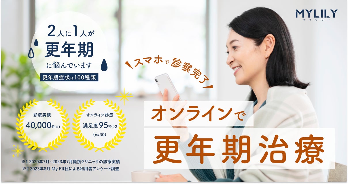 株式会社My Fit(本社:東京都中央区、代表取締役:山田 真愛)は2023年10月12日(木)より、更年期専門診療プラットフォーム『MYLILY(マイリリー)』がサービスの試験提供を開始いたしました。