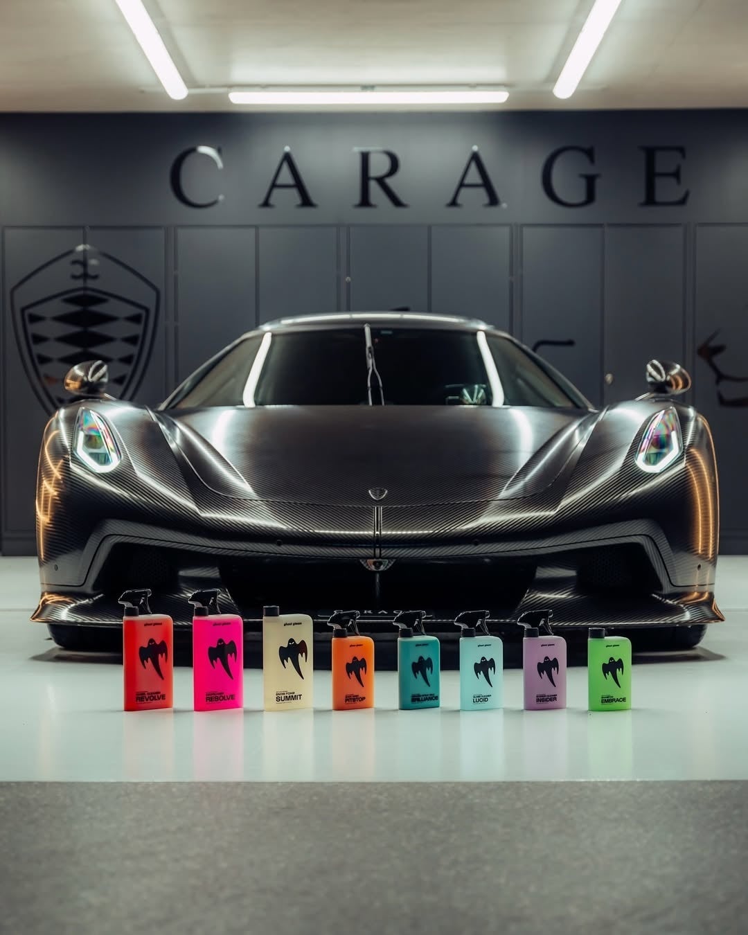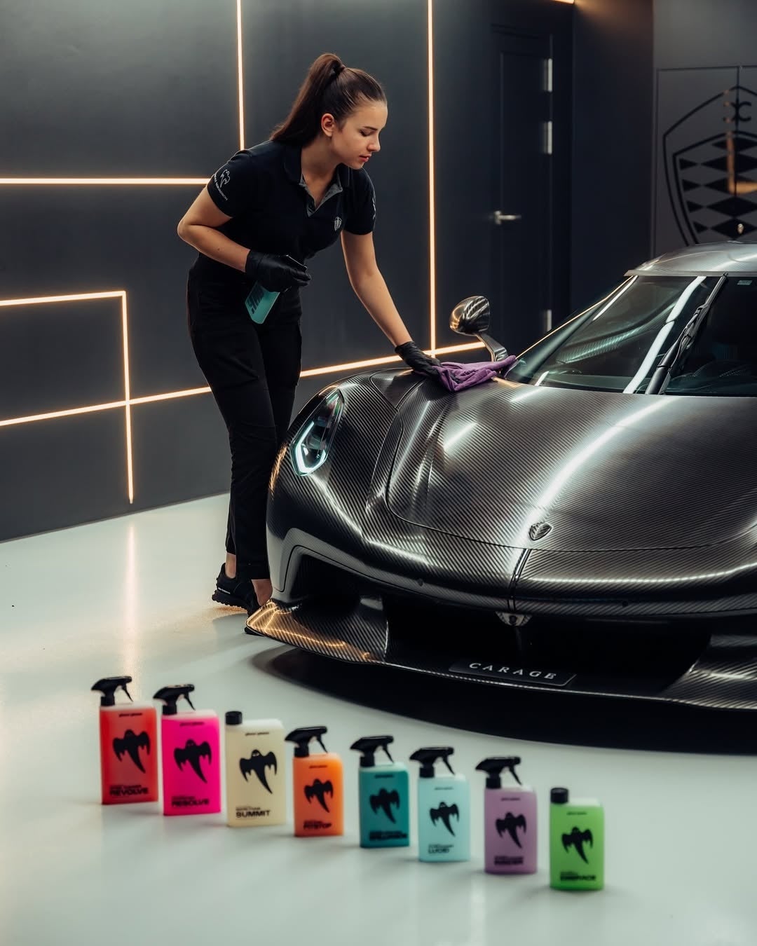 最大の特徴は、製品ごとに特別にブレンドされたラグジュアリーな香りと、Koenigseggの象徴である“Ghost Squadron(ゴースト・スコードロン)”があしらわれたボトルデザイン。洗車という日常のルーティンが、贅沢なひとときへと変わります。