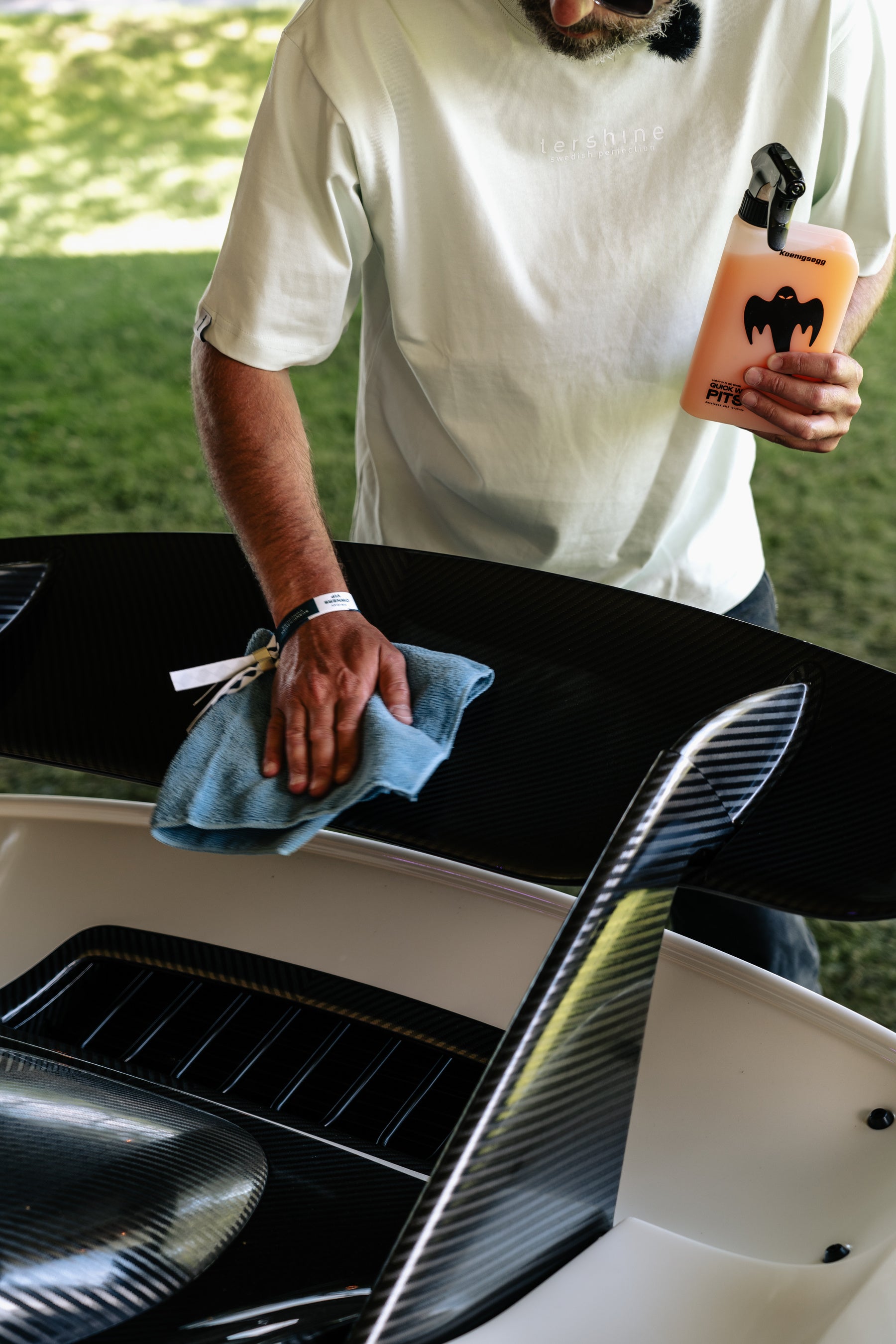 塗装面をはじめ、Koenigseggのネイキッドカーボンファイバーやプラスチックパーツにも対応し、美しい保護膜を形成する次世代のスプレータイプ・セラミックワックス。