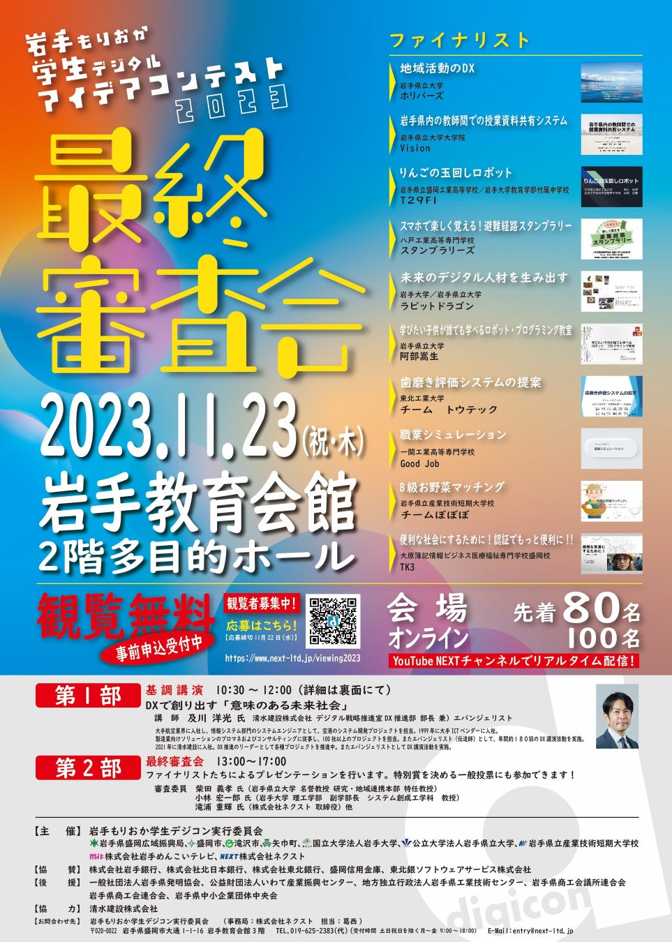 〇主催:岩手もりおか学生デジコン実行委員会(岩手県盛岡広域振興局、盛岡市、滝沢市、矢巾町、国立大学法人岩手大学、公立大学法人岩手県立大学、岩手県立産業技術短期大学、株式会社岩手めんこいテレビ、株式会社ネクスト)