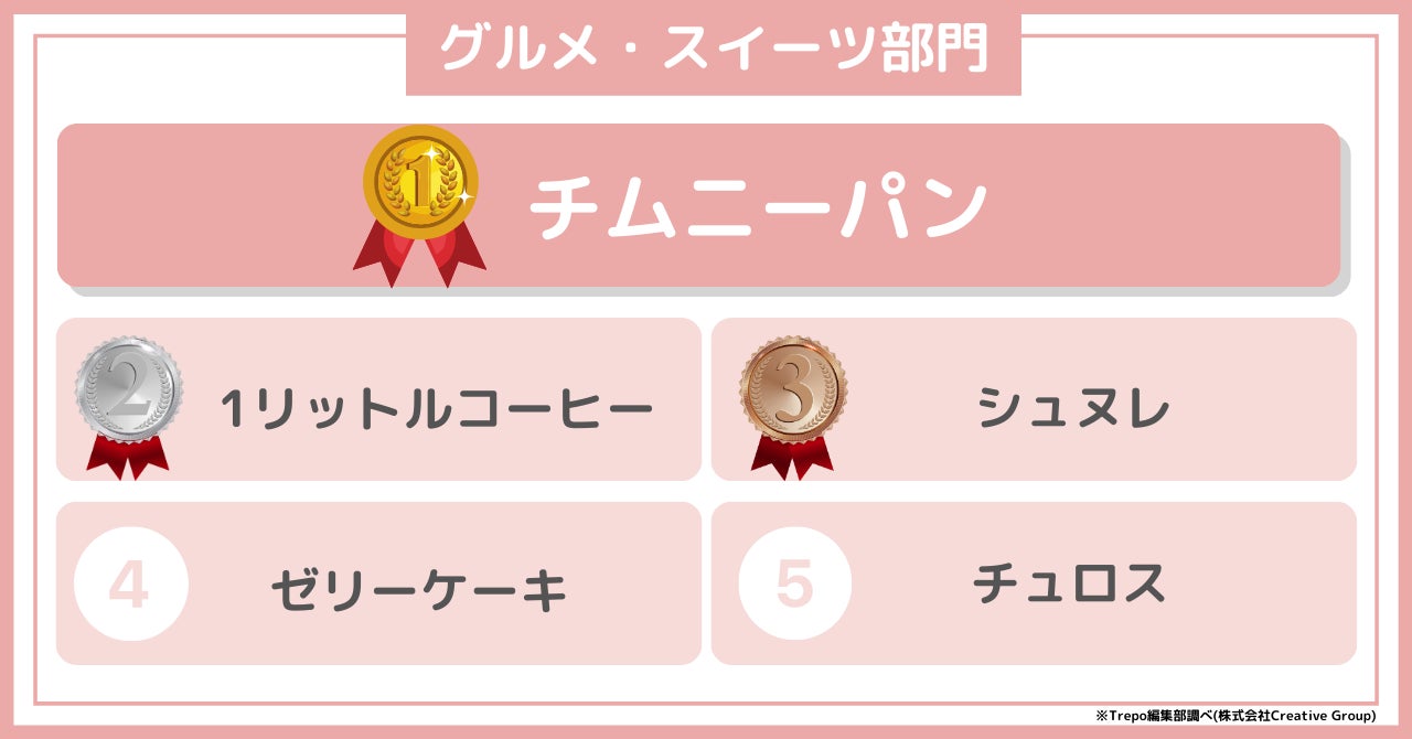 5位に選ばれたのは、「チュロス」。現在韓国で注目を集めている「チュロス」は、日本でもじわじわと人気が上昇しています。「チュロス」の専門店も急増しており、棒状のオーソドックスなチュロスの他、丸状のチュロスや文字をかたどったチュロスなど様々な形のチュロスが展開されています。 Instagramでは、「#チュロス専門店 」をつけた投稿が5,0000件以上にも上り、話題を呼んでいます(2023/6/21時点)。