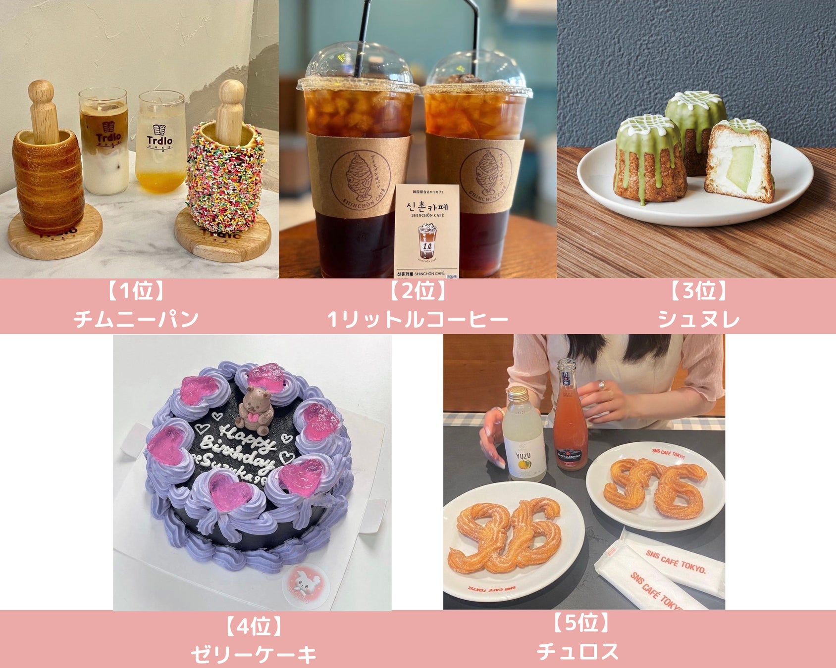 2位には、「1リットルコーヒー」がランクイン。韓国発祥の「1リットルコーヒー」は、1リットルもの量に対して価格が安く、韓国では1800ウォン(180円)で販売されています。日本でも新大久保にある「SHINCHŌN CAFĒ」(シンチョンカフェ)や、両国にある「ULTRA COFFEE」(ウルトラコーヒー)が390〜500円で販売を開始したことをきっかけに、話題を呼んでいます。