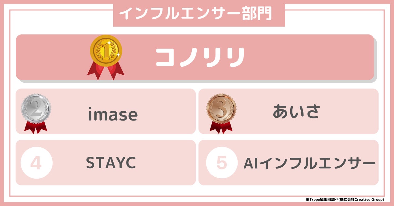 「コト・モノ」「ファッション」「グルメ・スイーツ」「インフルエンサー」の4部門に分け、調査を実施!