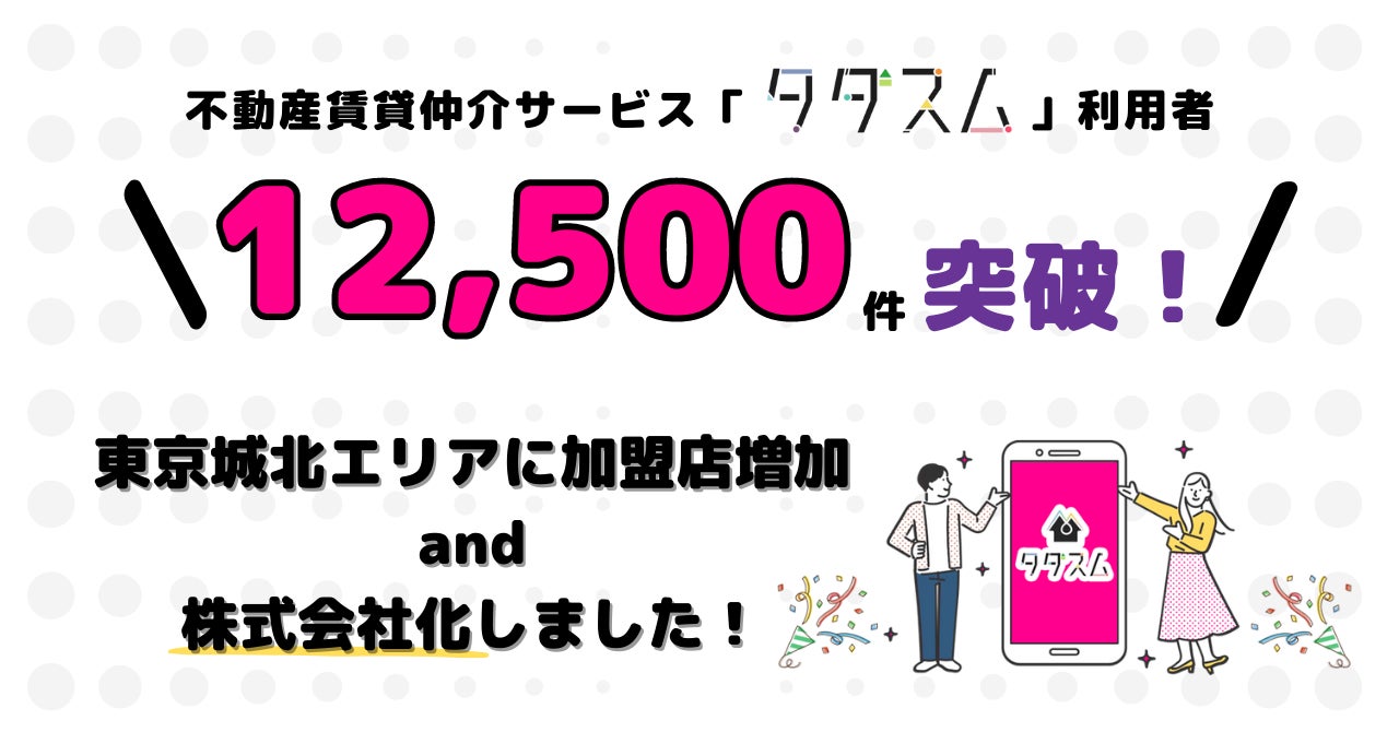 不動産賃貸仲介サービス「タダスム」利用者12,500件突破!城北エリア体制強化と株式会社への組織変更について