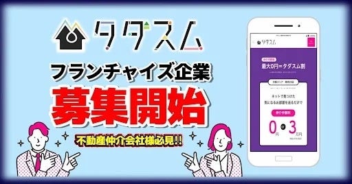 タダスムでは、お申し込み後は賃貸仲介を営むFC加盟店と協力してお客様の賃貸契約をサポートしております。より多くの方々の申し込みを受け付けられるように、新たな加盟店を迎えて体制を強化してまいります。