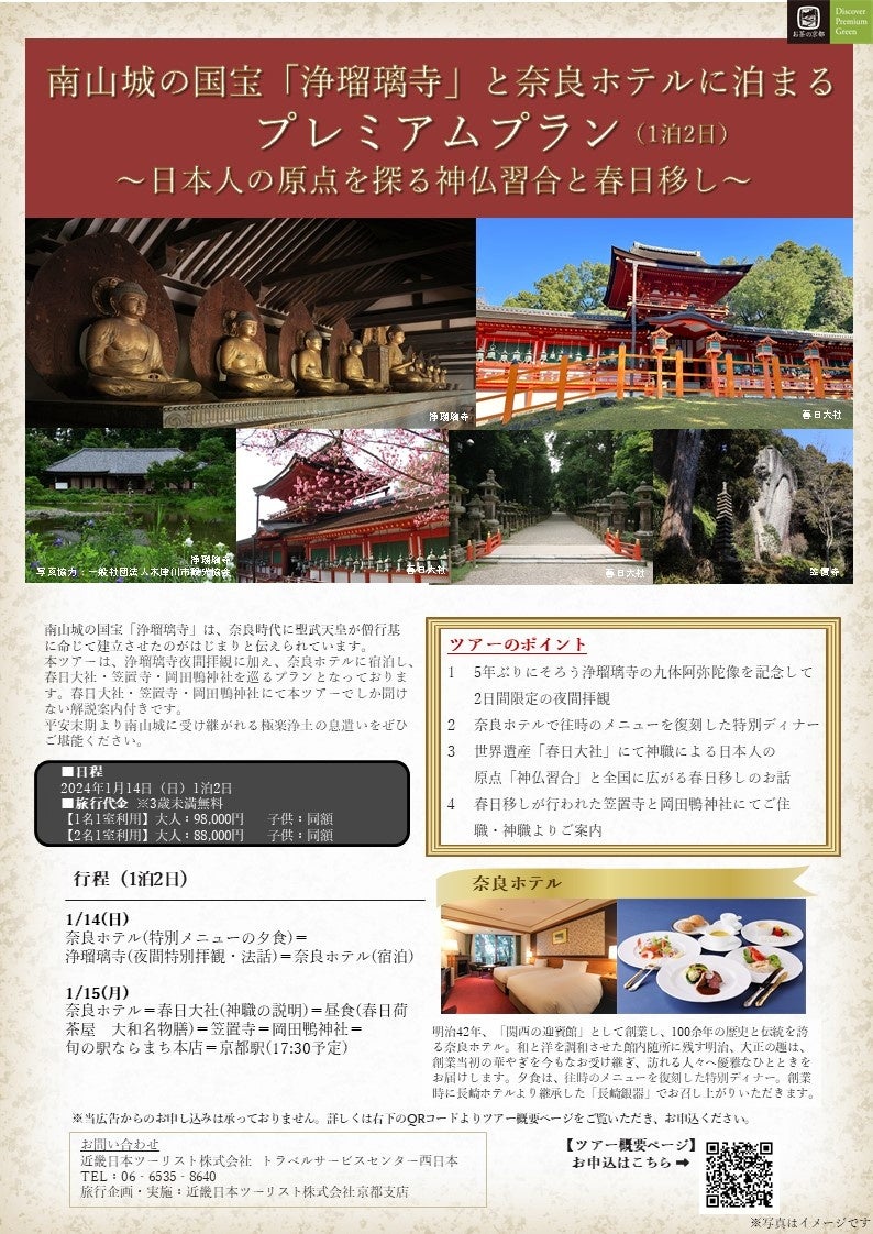 コース③ 奈良ホテルに泊まるプレミアムプラン:2024年1月14日(日)1泊2日