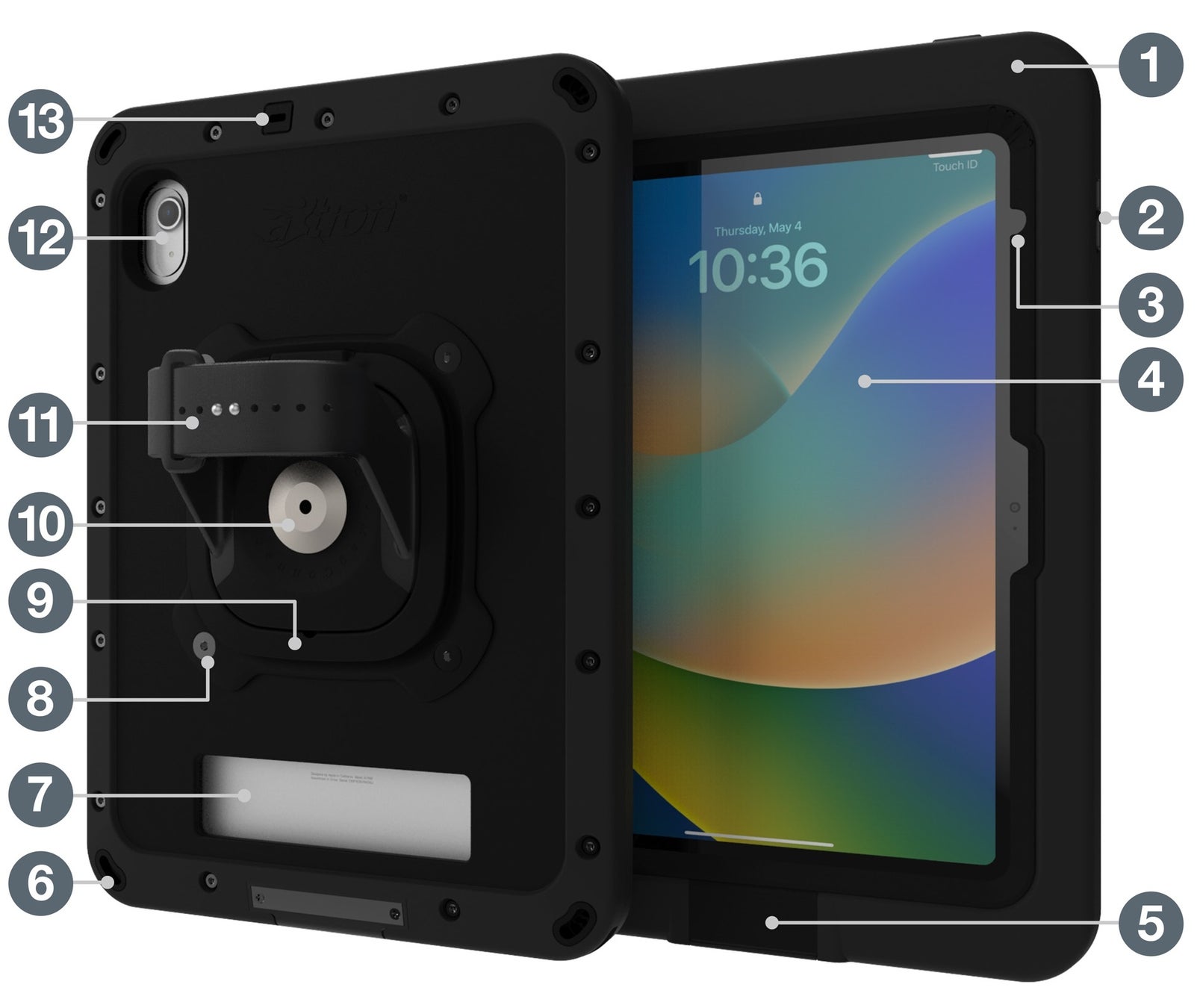 iPad 10.9インチ 第10世代対応・米軍規格 MIL-STD-810H 耐衝撃性能・完全防水/防塵(IP68)・セキュリティロックポート搭載