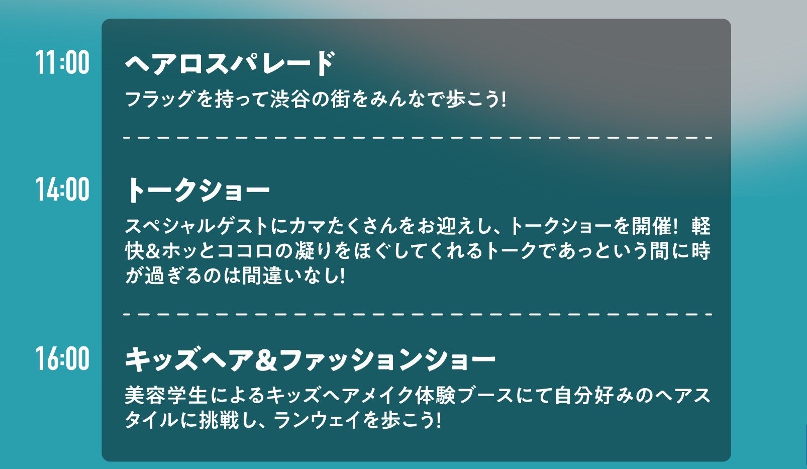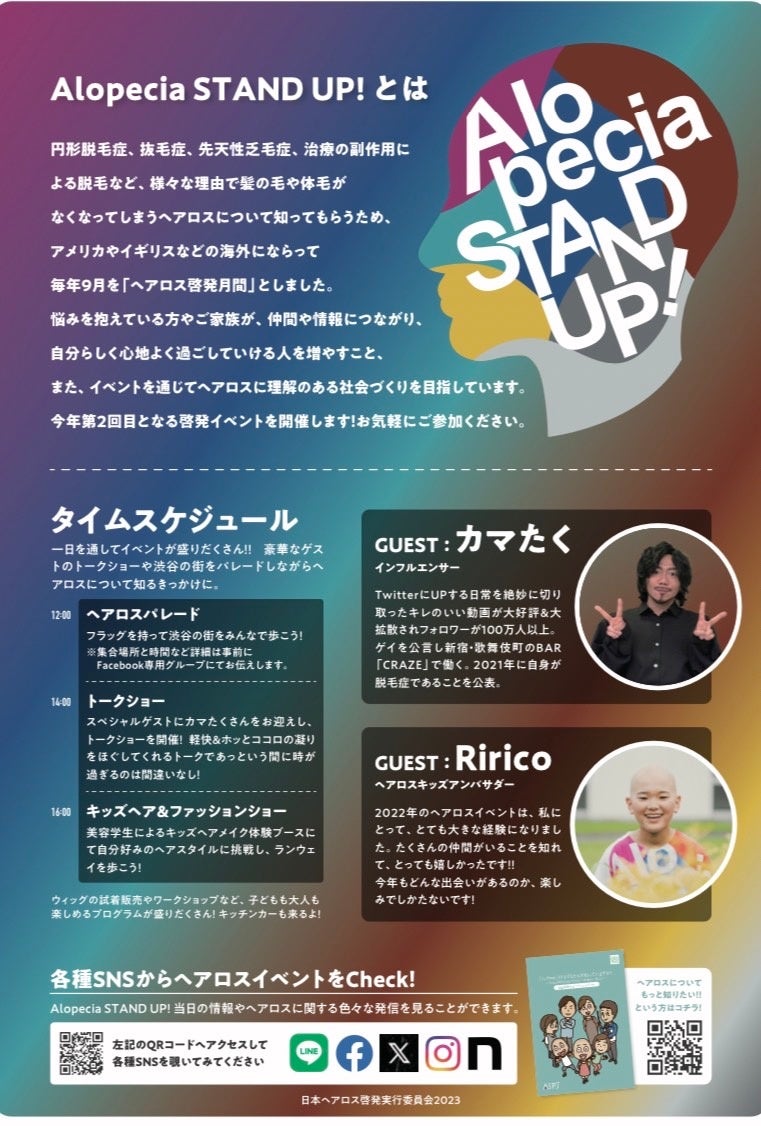 9/23(土・祝)渋谷発!ヘアロス啓発イベントを当事者たちが開催。パレード、インフルエンサー「カマたく」さんのトークショー、キッズヘアショー等でヘアロスの認知拡大を目指します!